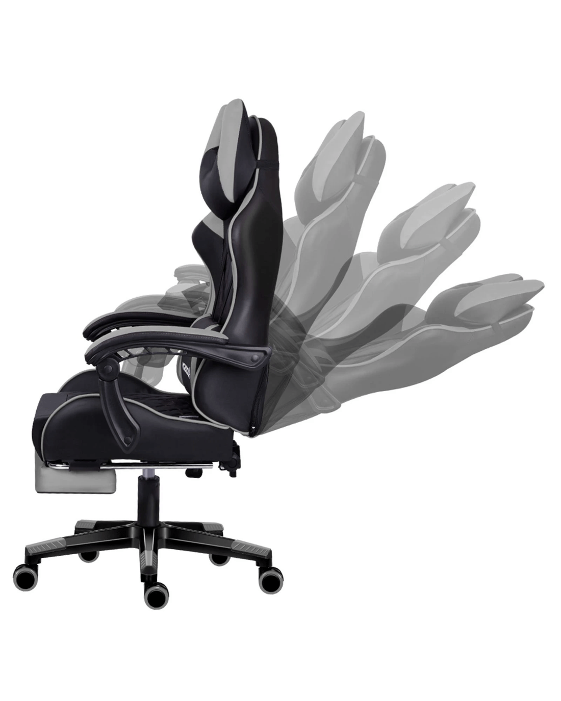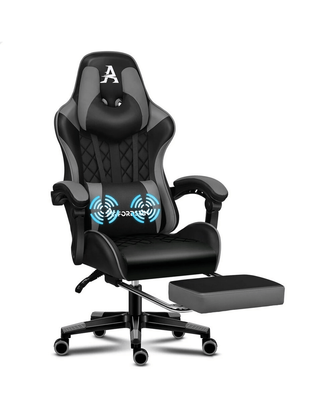Sold by Aussie Union GroupAlfordson Gaming Chair Office Racer Large Lumbar Cushion Footrest Seat Leather - Grey