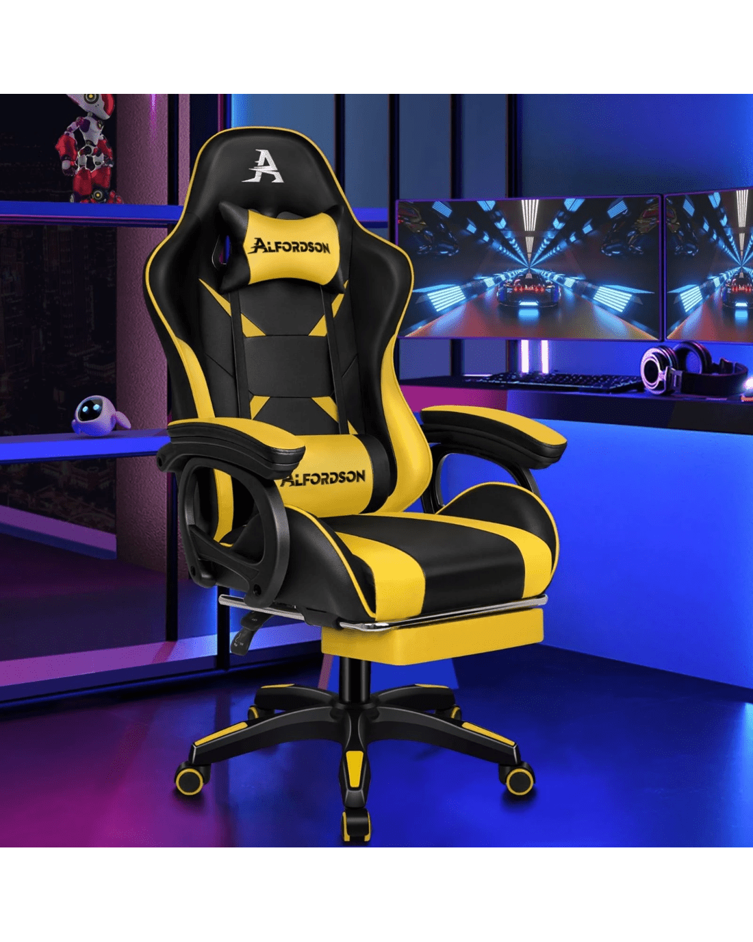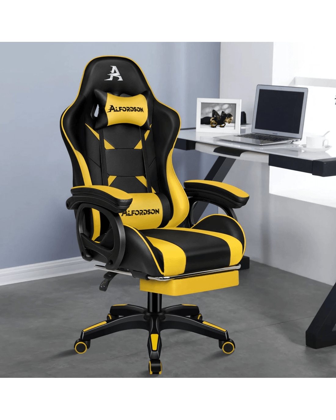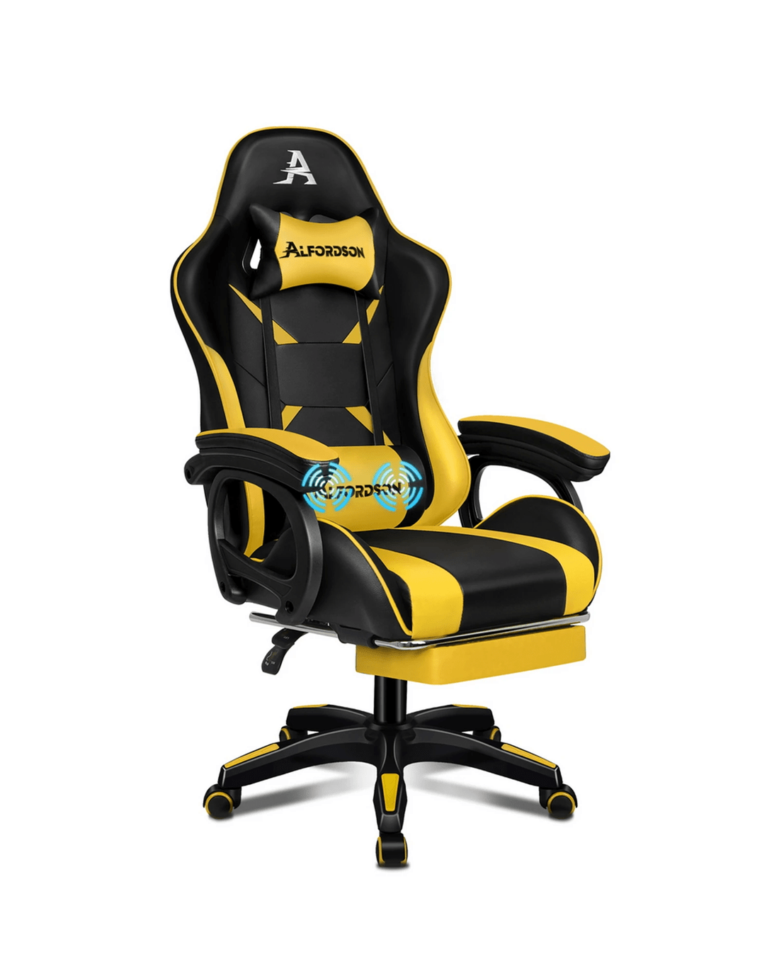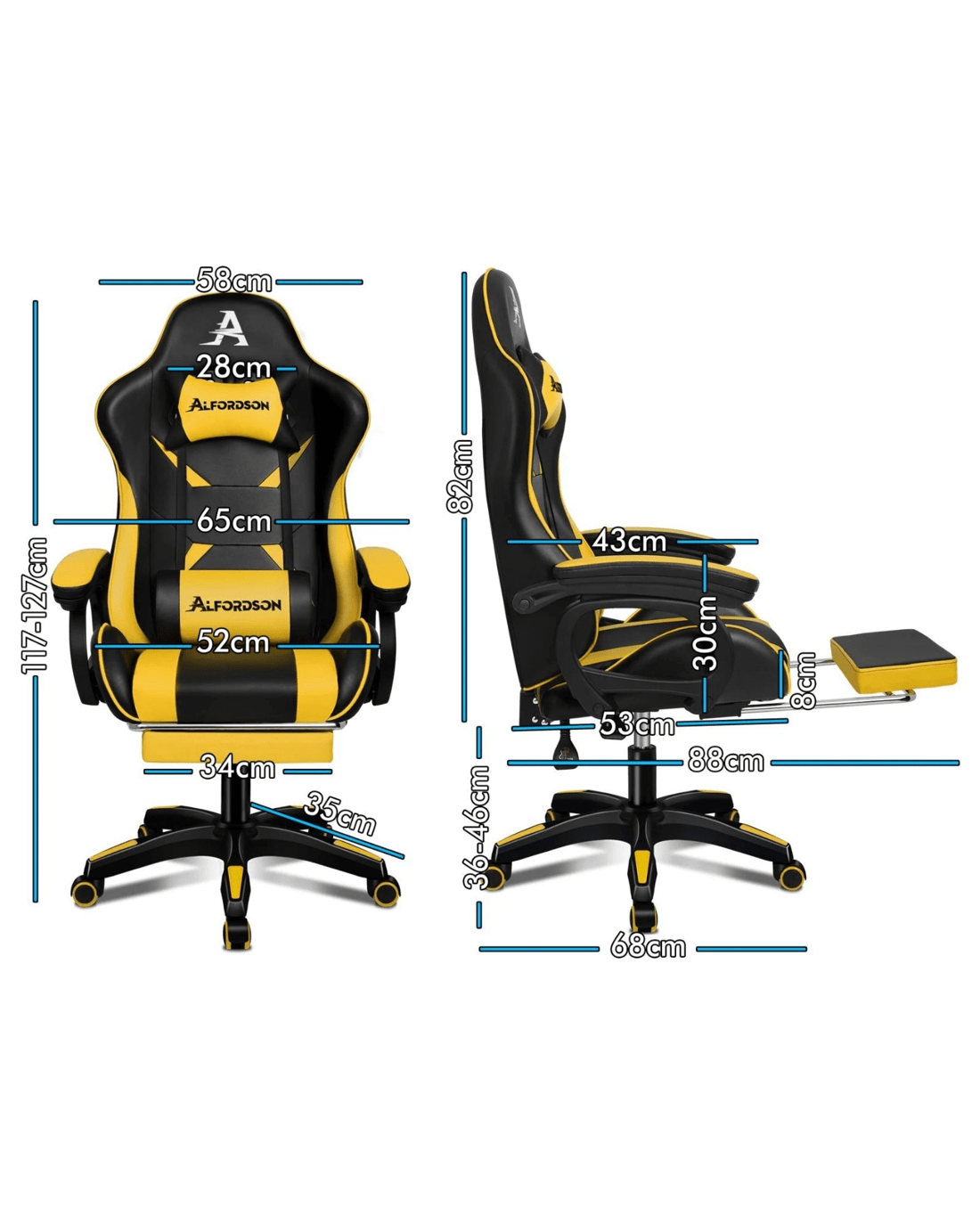 Sold by Aussie Union GroupAlfordson Gaming Office Chair Massage Racing Computer Seat Footrest Leather - Yellow