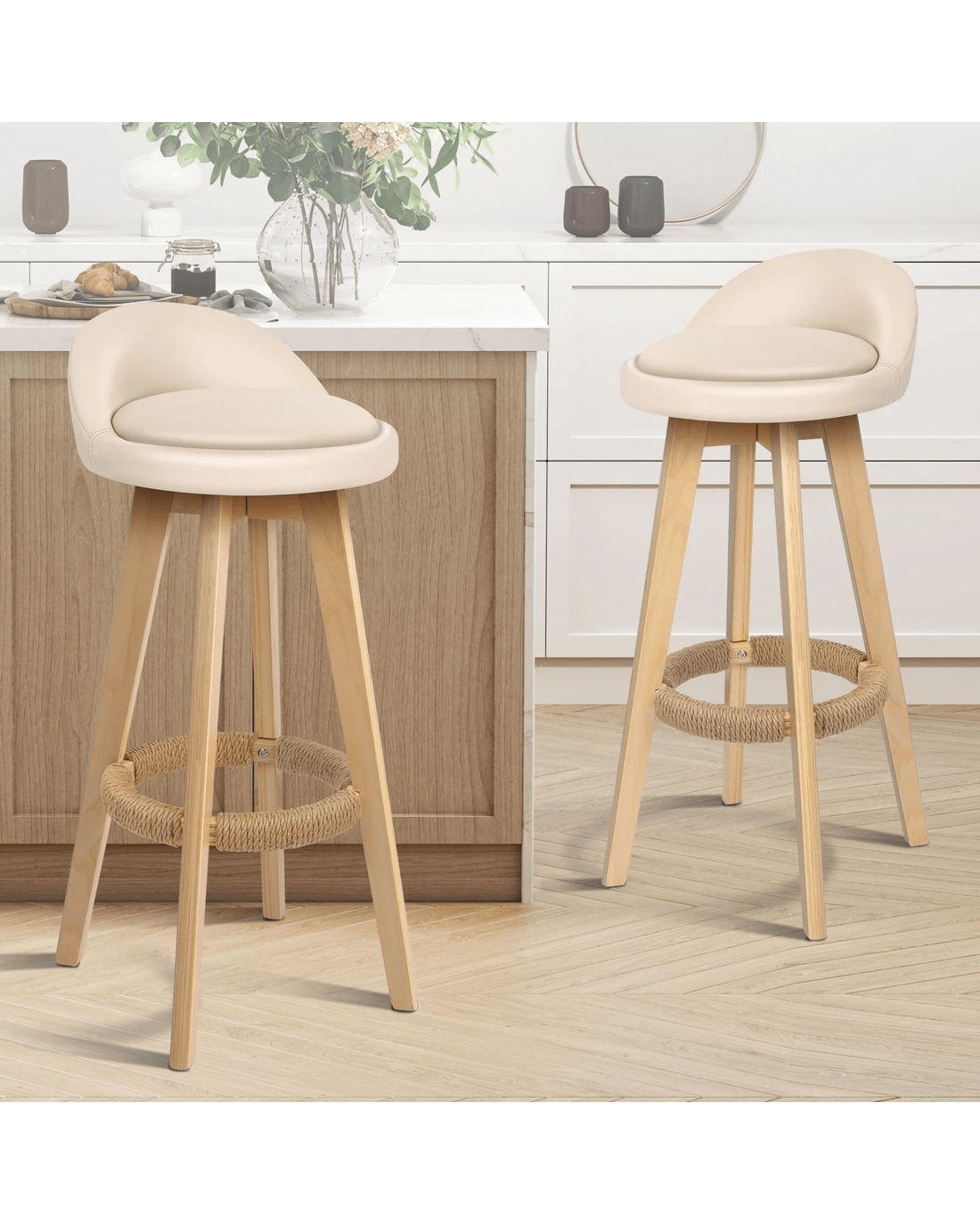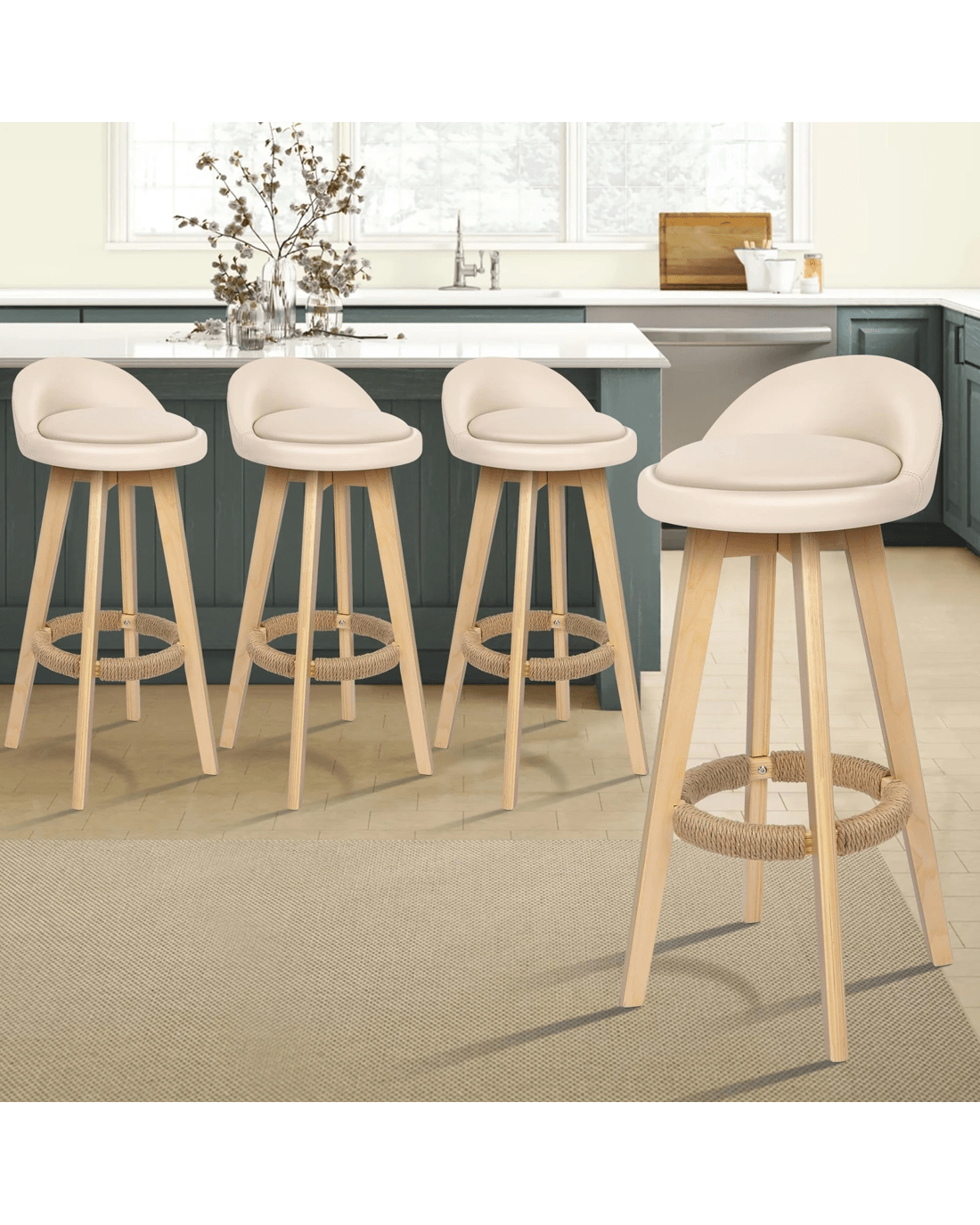 Sold by Aussie Union GroupAlfordson 4x Kitchen Bar Stools Liam Wooden Swivel Bar Stool Chairs - Beige