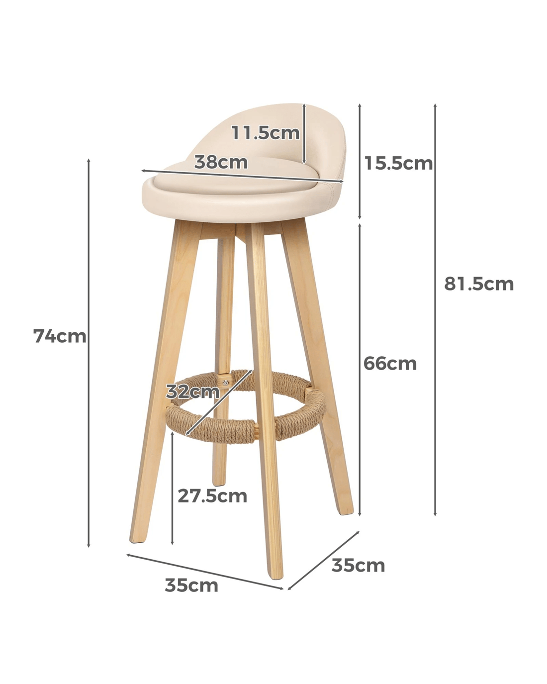 With an eclectic mix of wood, hemp rope and PU leather, this bar stool is designed to match any furniture taste.