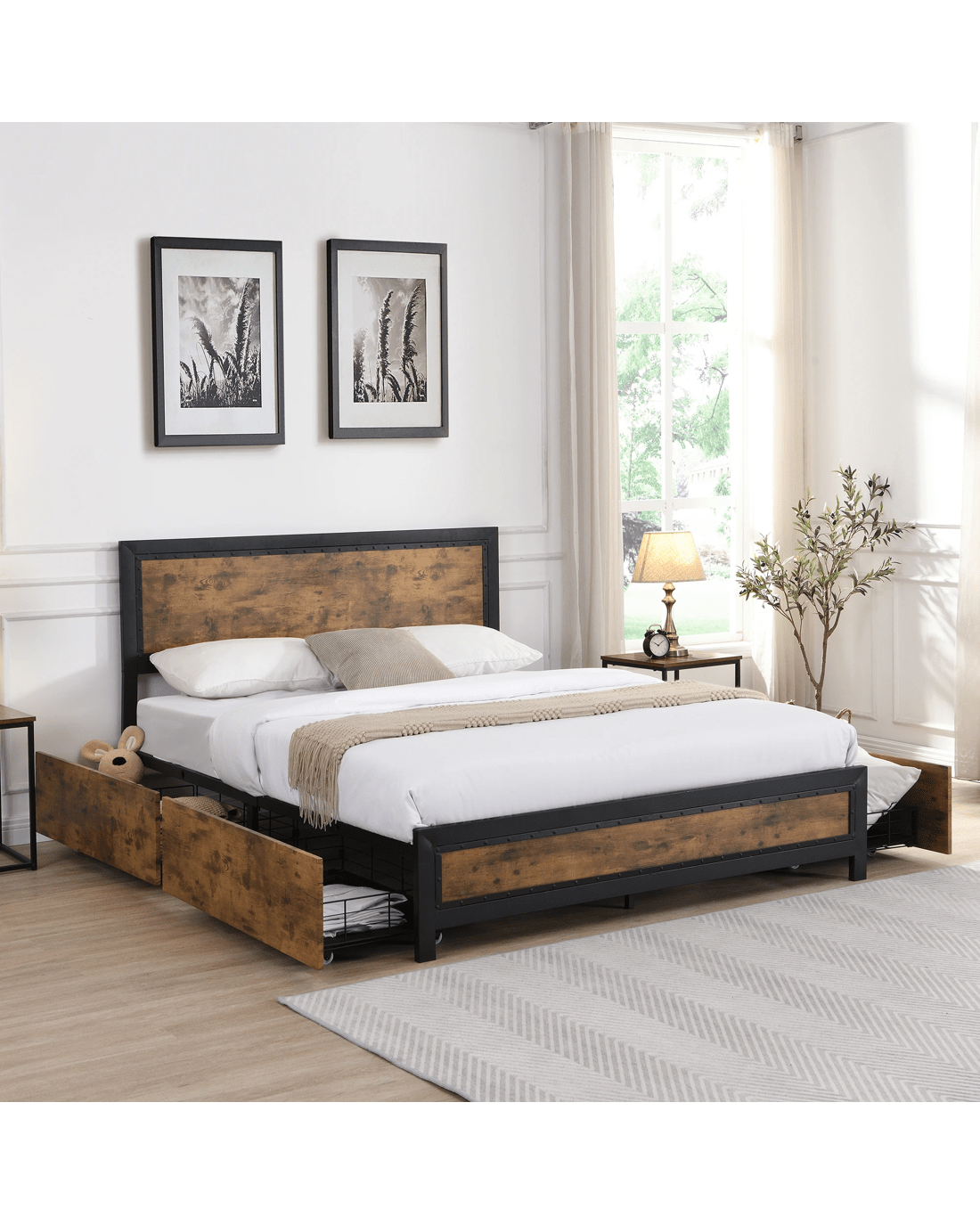 Extend your mattress life with your reinforced storage bed frame. No more sagging or sliding mattresses. Your industrial bed frame double is the perfect addition to your guest bedroom or main suite.