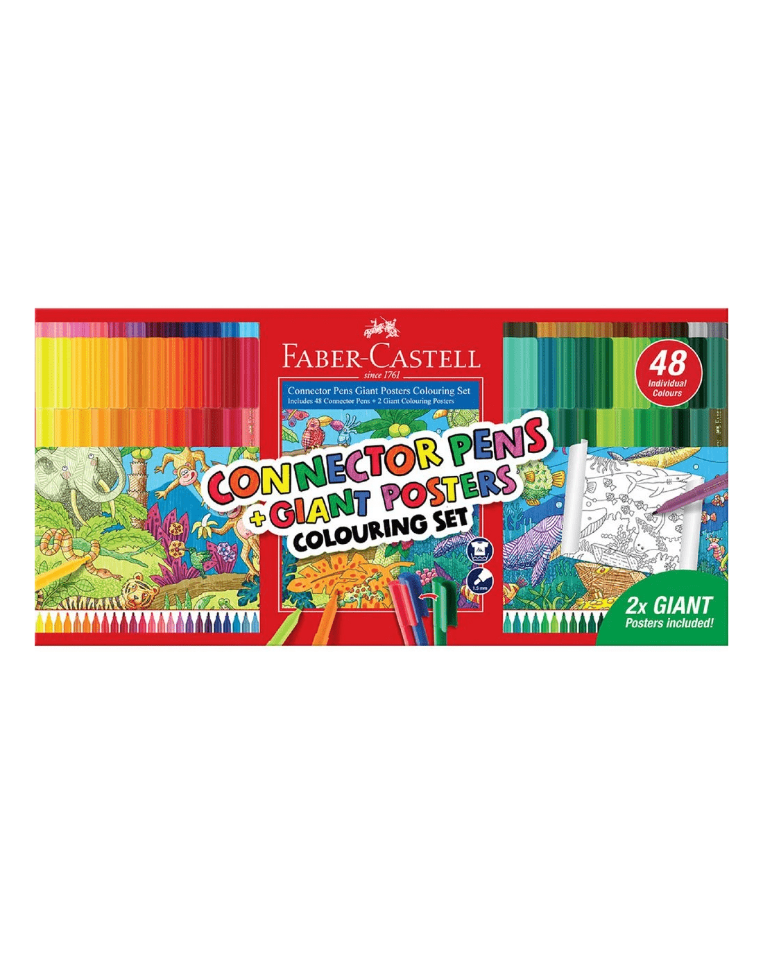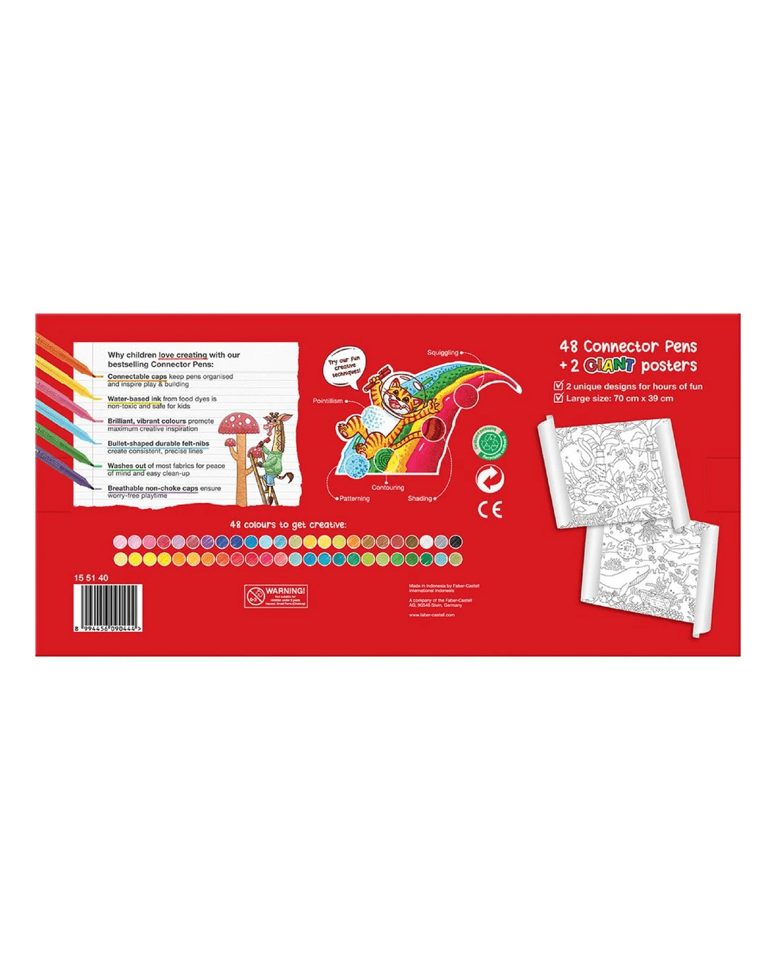 - This pack contains 48 connector pens in a rainbow assortment and 2 giant colouring posters.