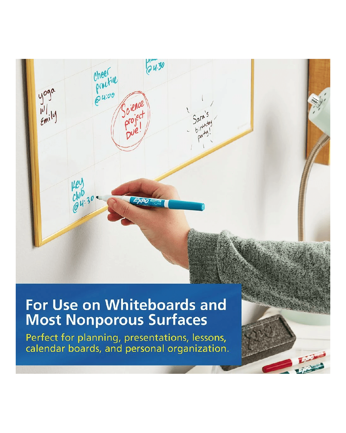 The Expo Fine Whiteboard Markers are a great tool for helping early learners to discover their potential or for assisting with important presentations. Featuring an array of vibrant colours, these markers are eye-catching and easily visible from a distance. The ink can be dry erased easily, cleanly and quickly using a cloth or eraser.