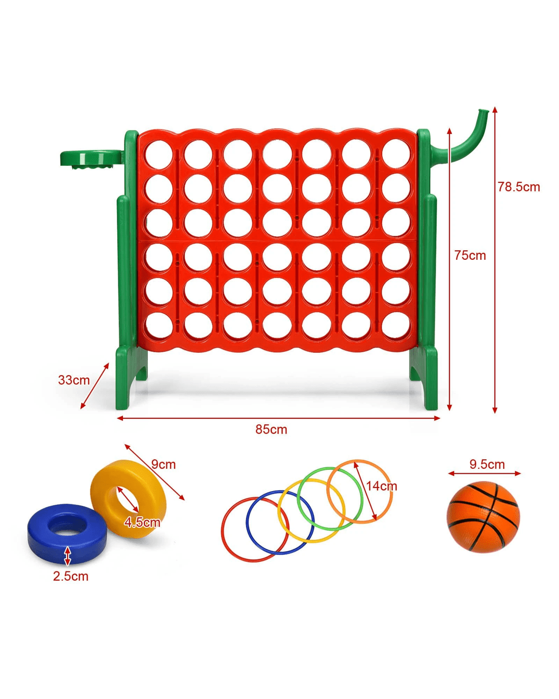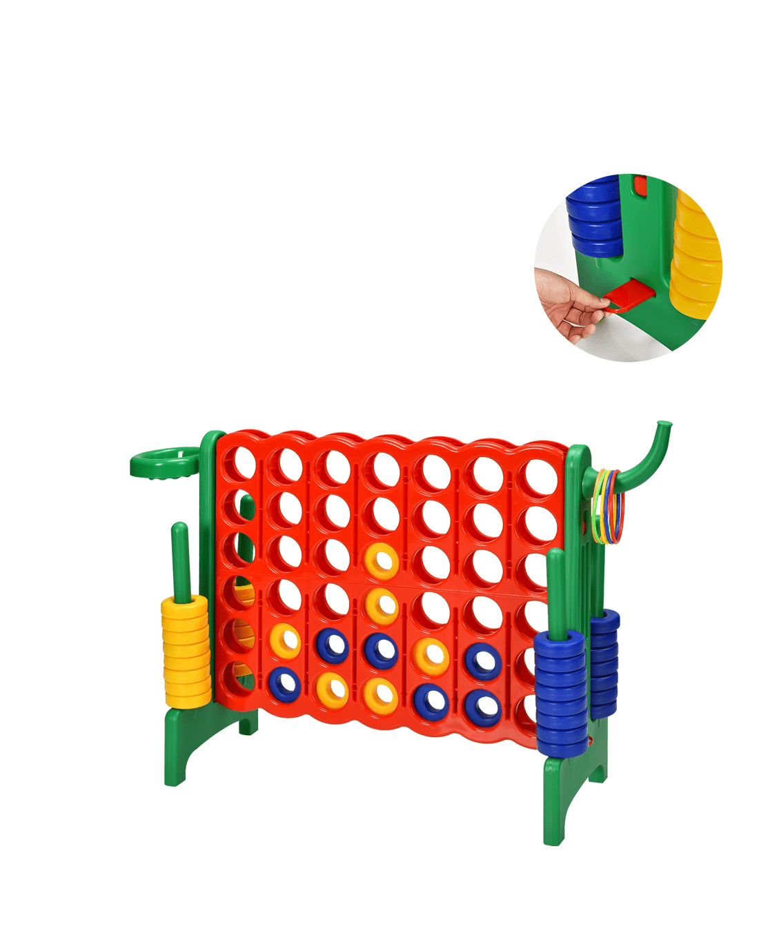 Have a blast with your family with our giant 4-in-a row game set. Designed with 3-in1 function, it keeps everyone entertained for hours, perfect for both adults and little ones. Made of premium PP and PE material, it features a long lifespan and better toughness. For little ones, high-quality material is safe and nontoxic for long-time use. Plus, it assists little ones in ability development. By aligning four pieces in a row and blocking opponent’s pieces, little ones effectively enhance cognitive ability, hand-eye cooperation, logical thinking and more. Additionally, it’s of great ease to assemble the set within minutes without any tool. With the weight of 4.5kg, it’s convenient to carry out for outdoor use. Surely, it fits in exactly with your wishes.