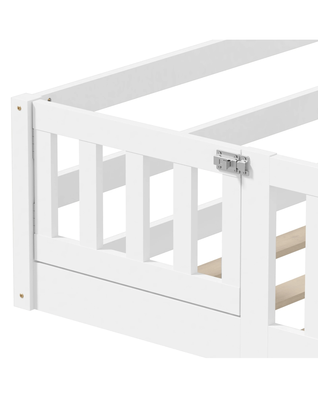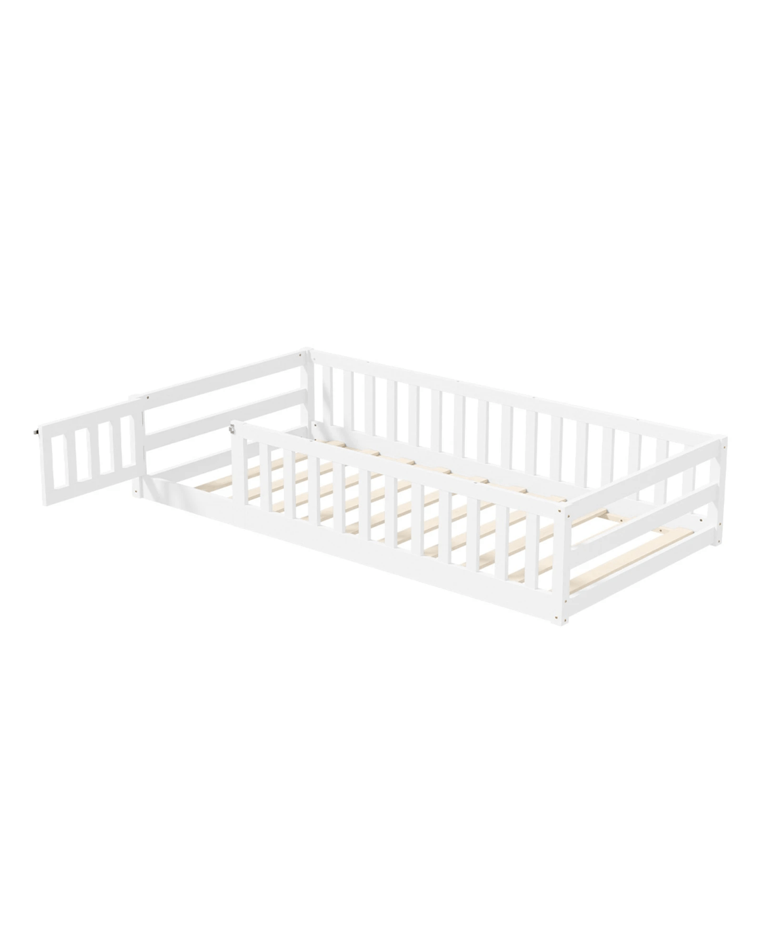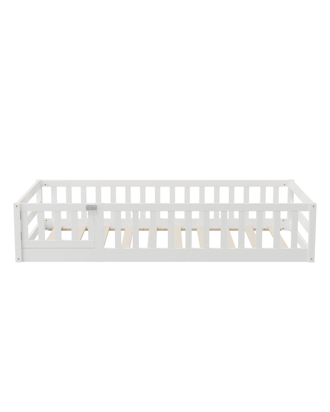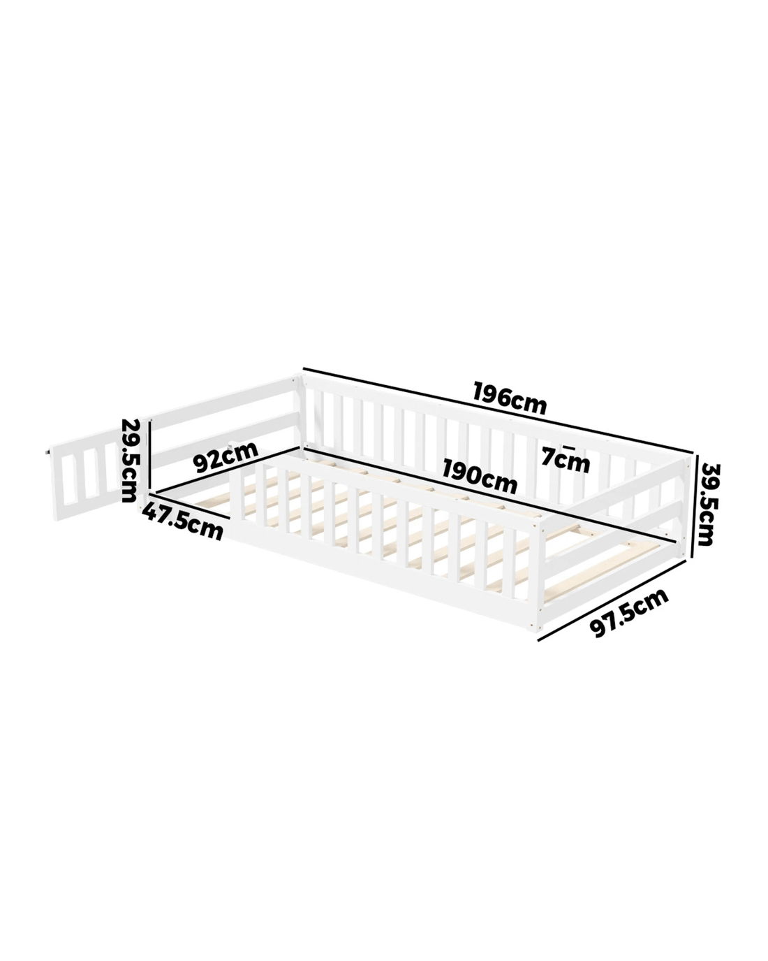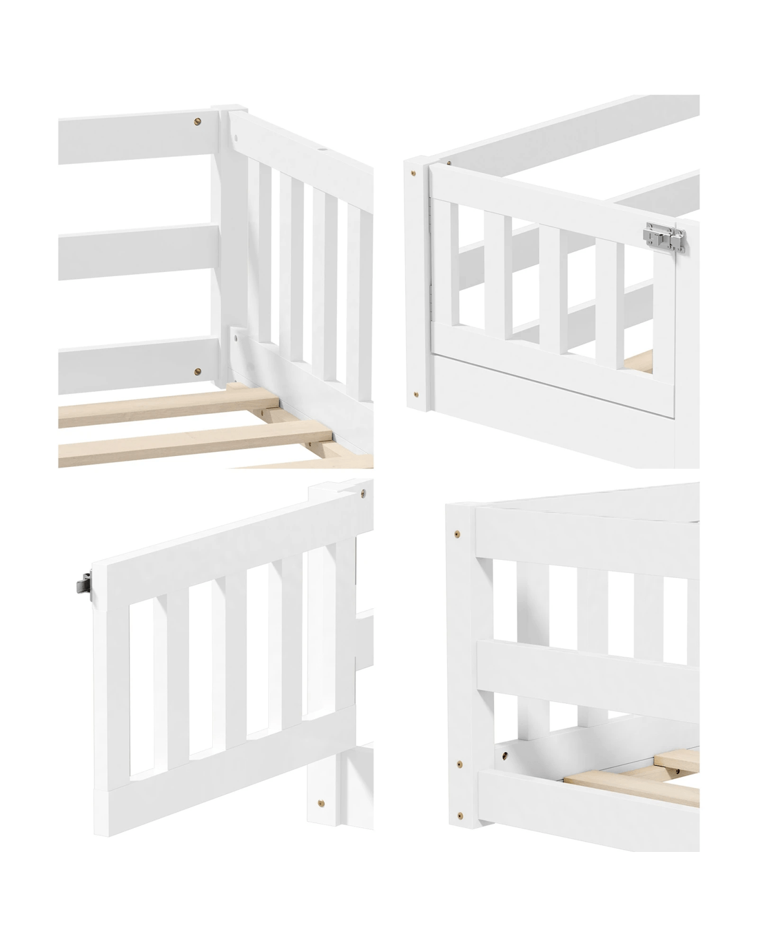 Sold by Kamprad's Oikos 1943Oikiture Single Kids Bed Frame with Gate Fence Wood - White