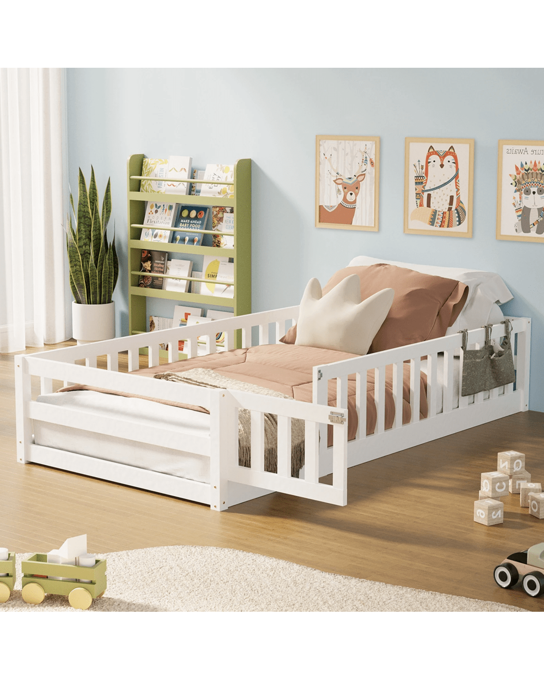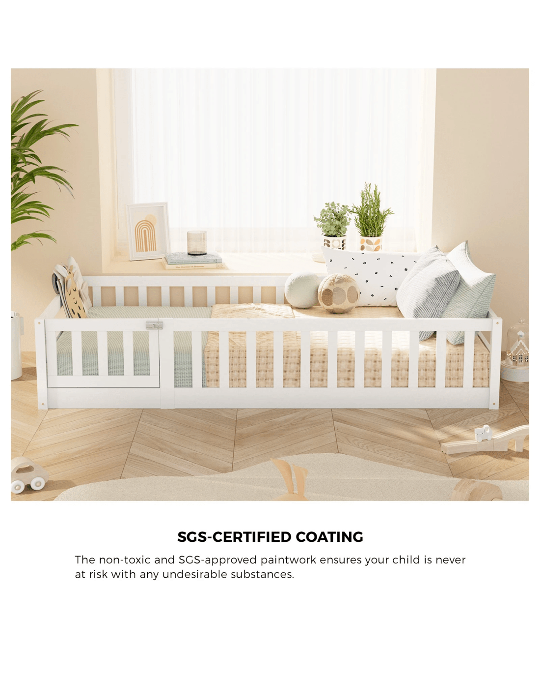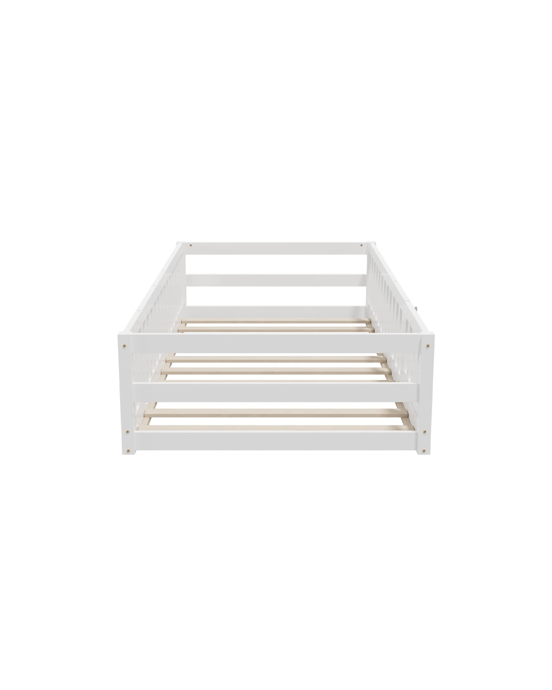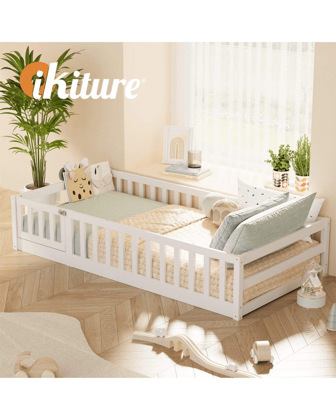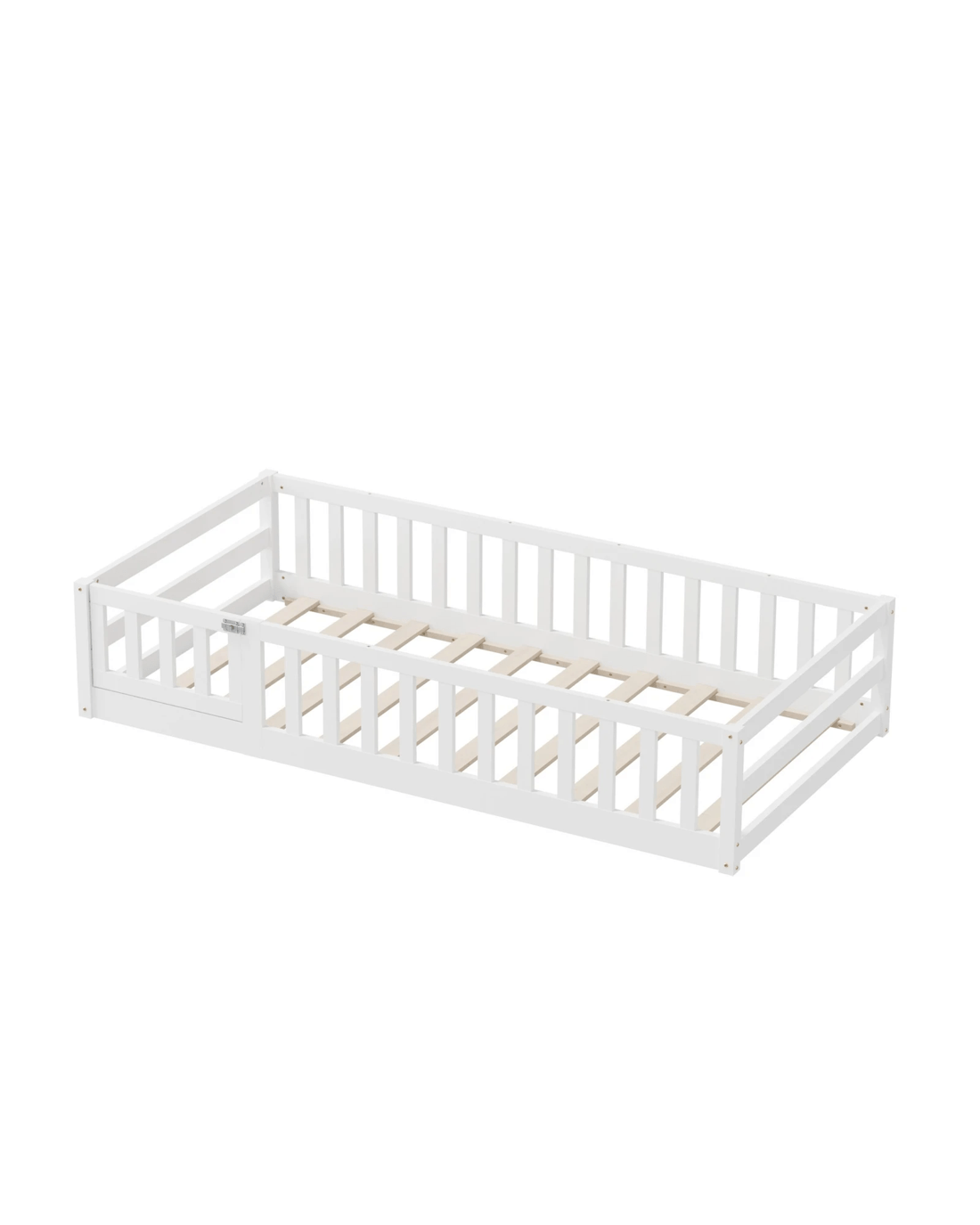 Sold by Kamprad's Oikos 1943Oikiture Single Kids Bed Frame with Gate Fence Wood - White