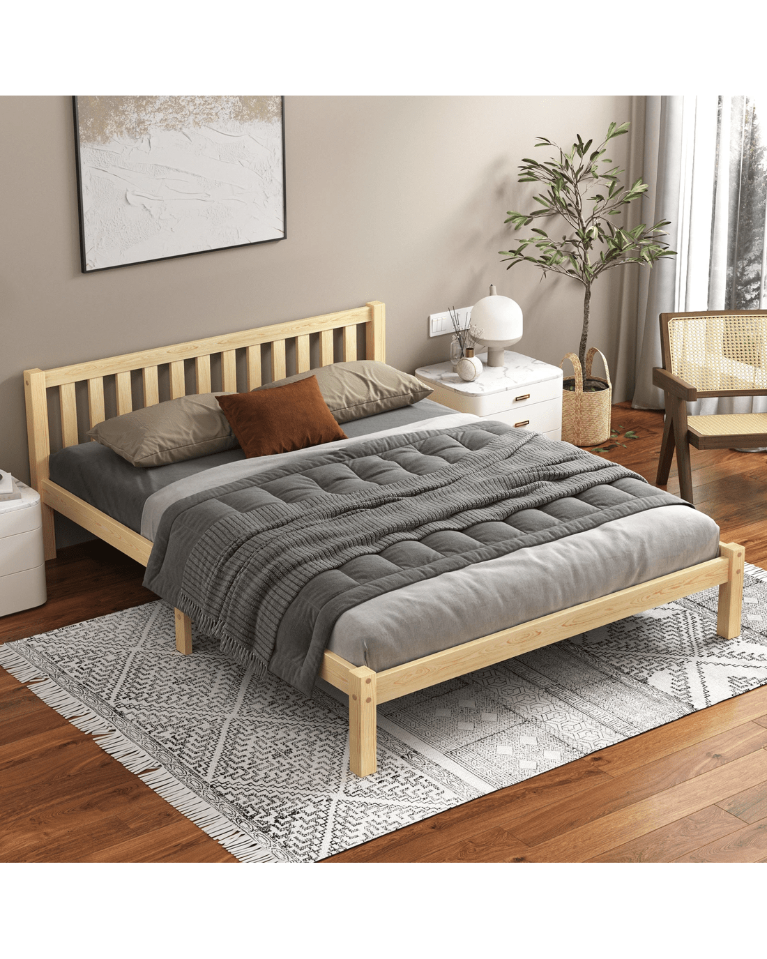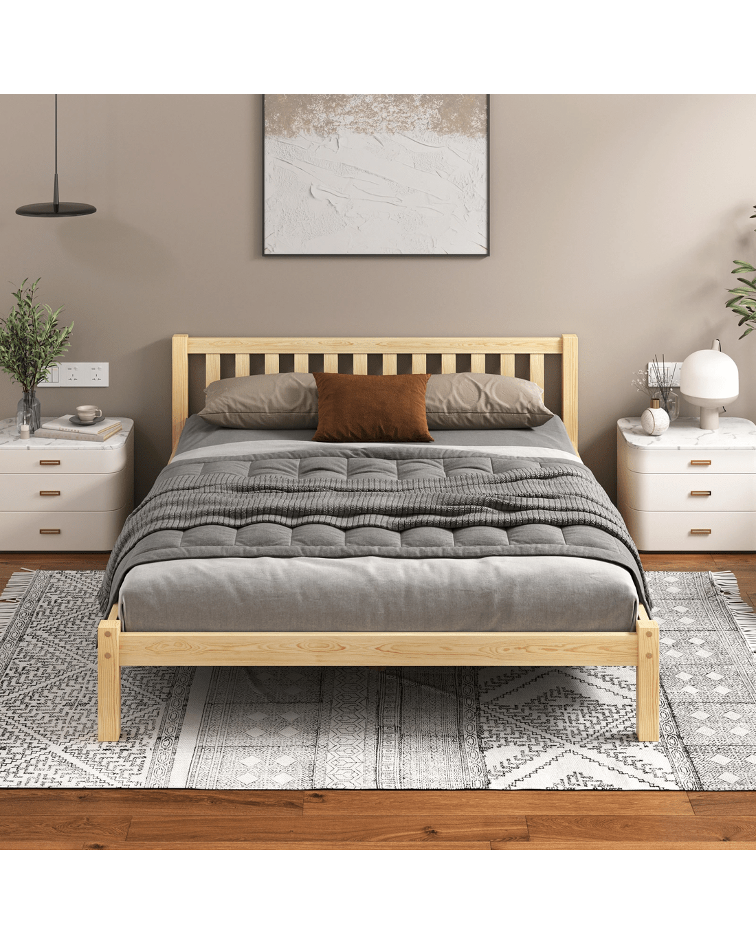 * Bed frame material: Pine wood