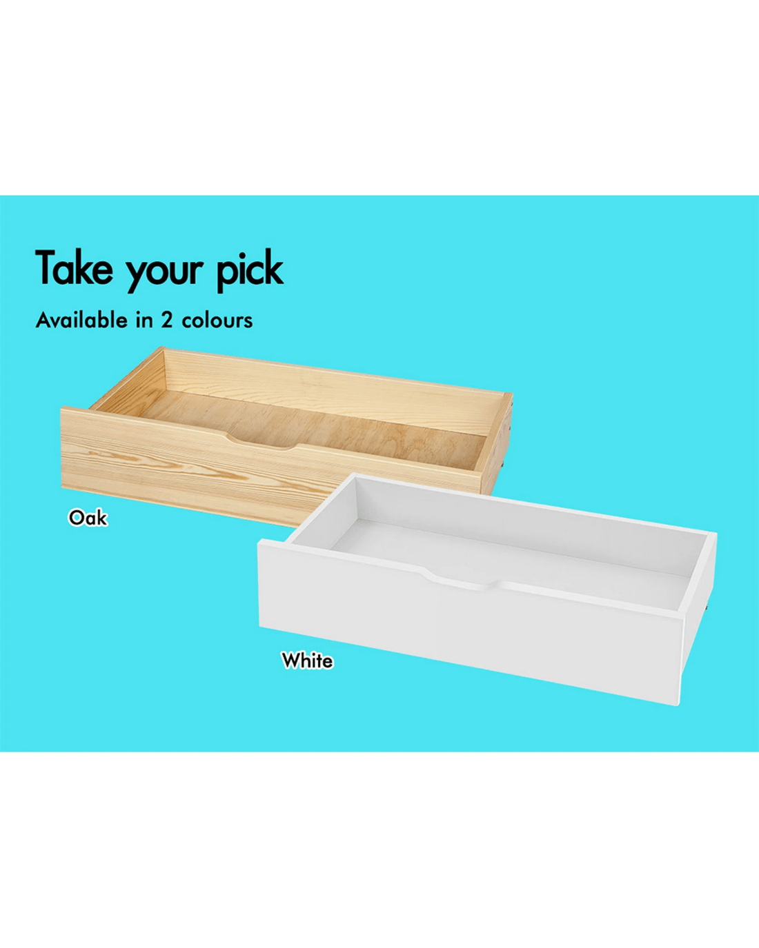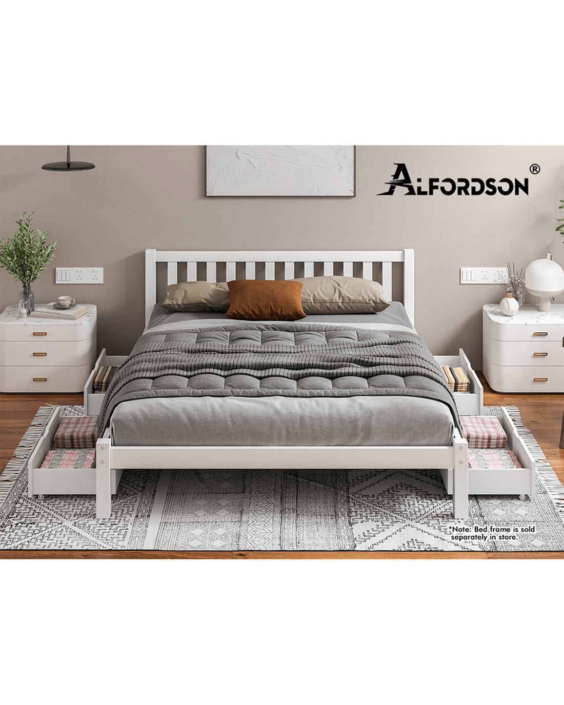 Alfordson 2x Storage Drawers Trundle for Wooden Bed Frame Base Timber - White