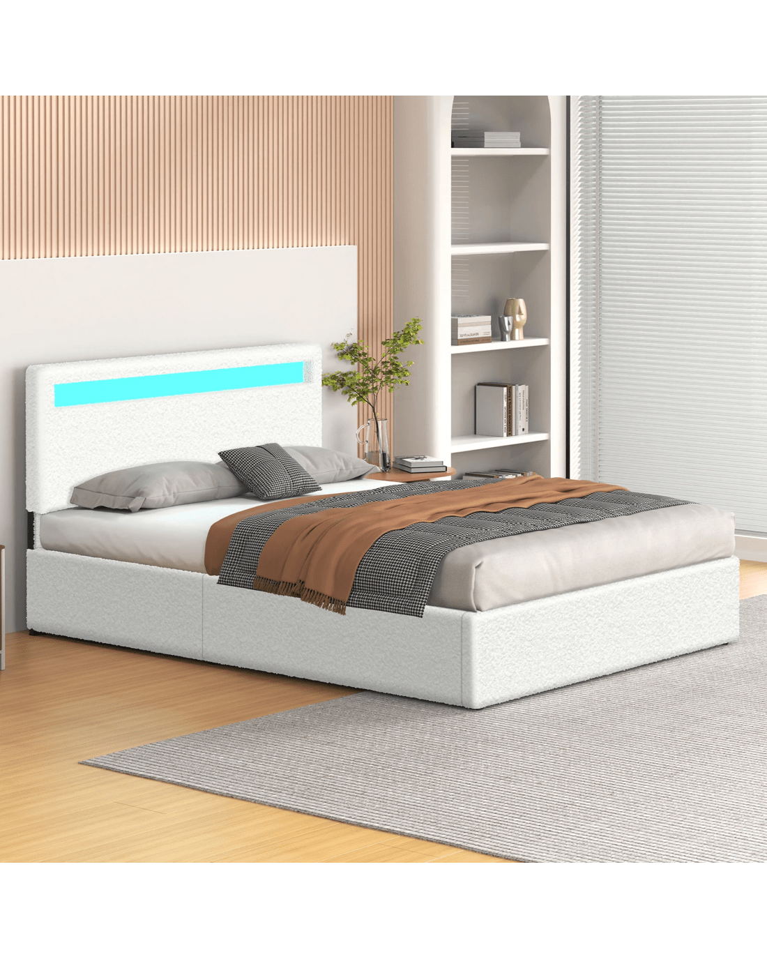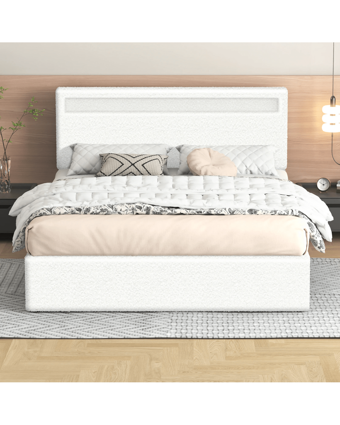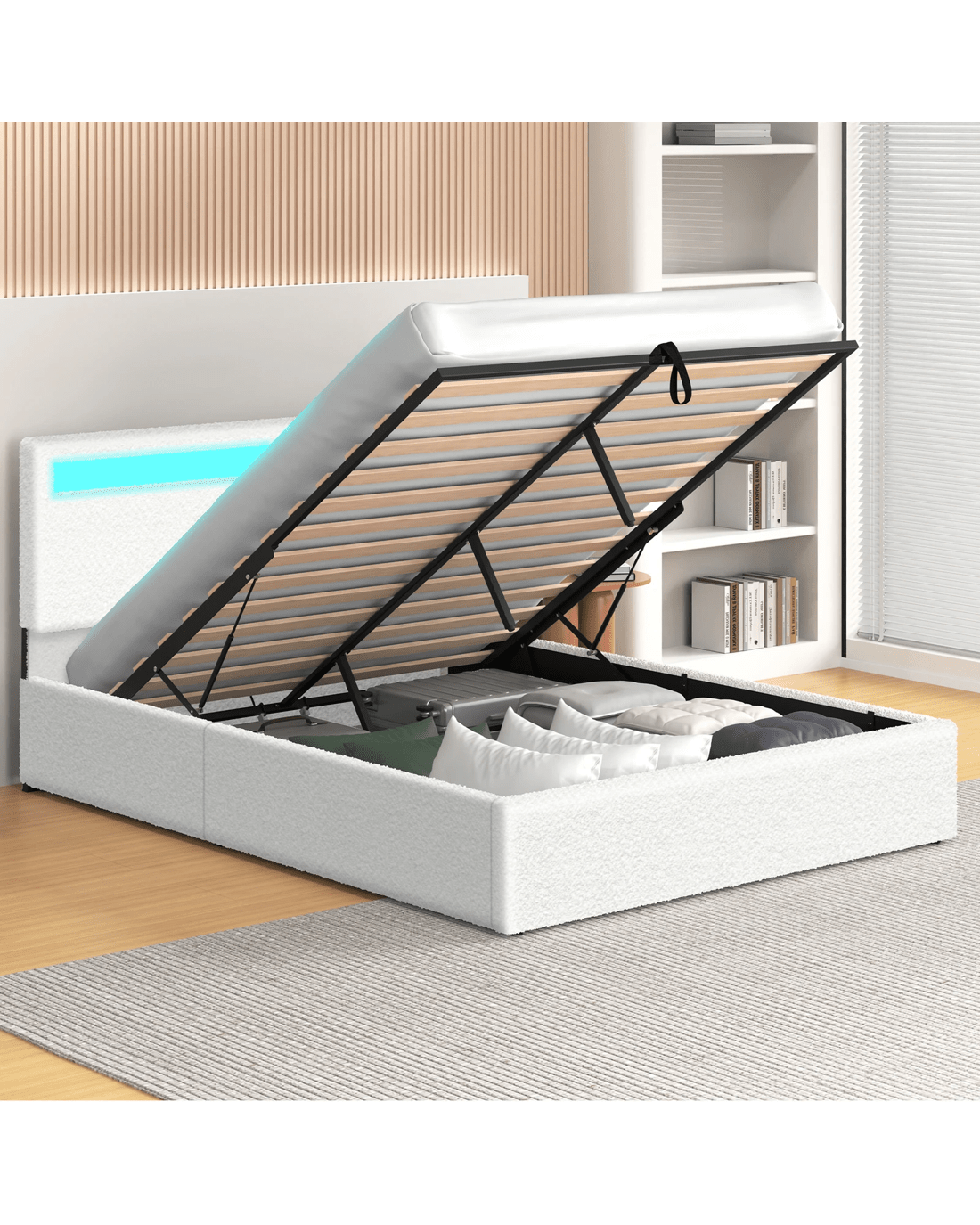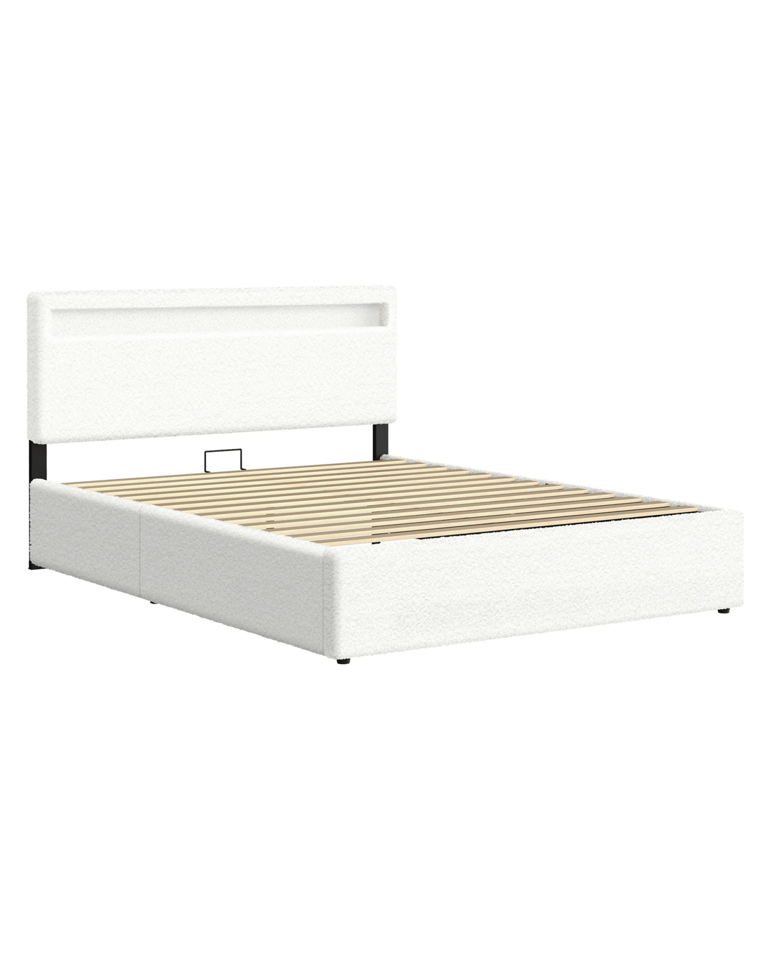 Sold by Aussie Union GroupAlfordson Bed Frame Queen Size RGB LED Gas Lift Storage Base Boucle Luchino - White