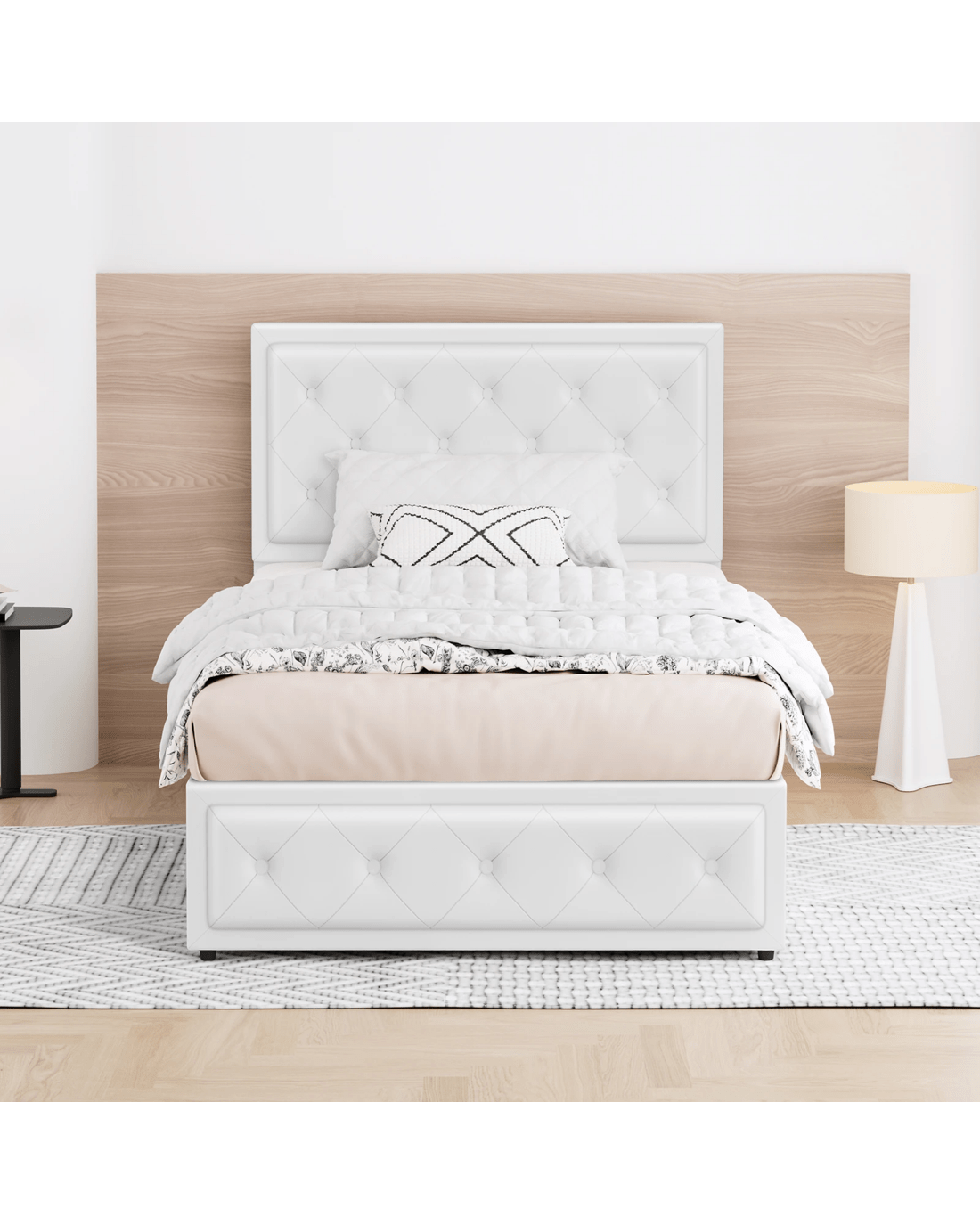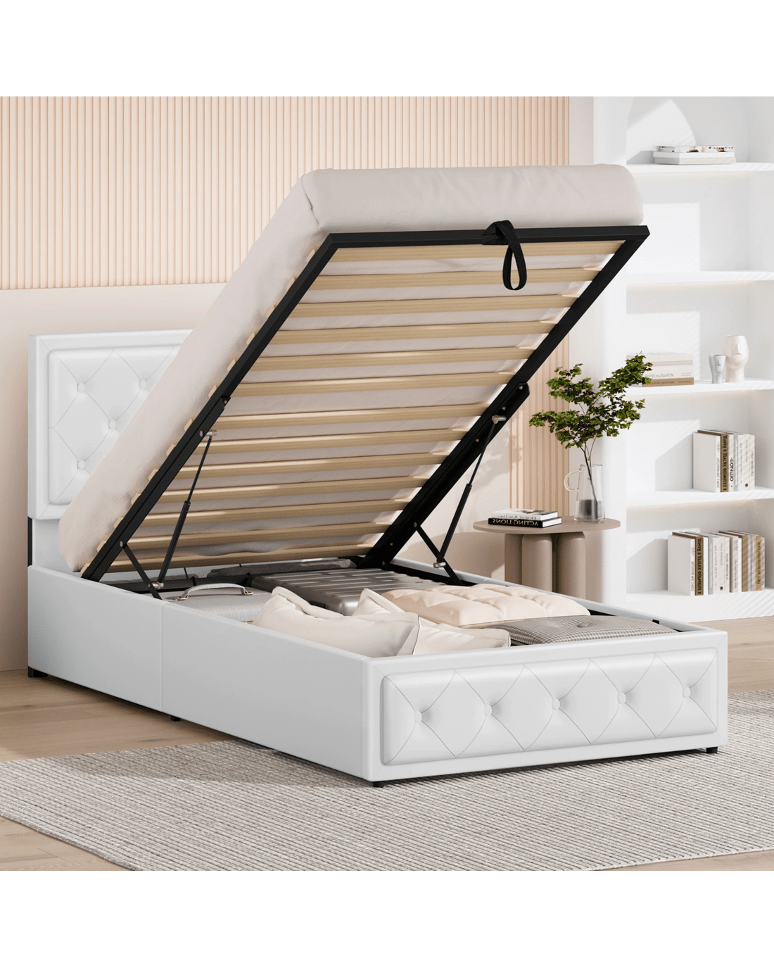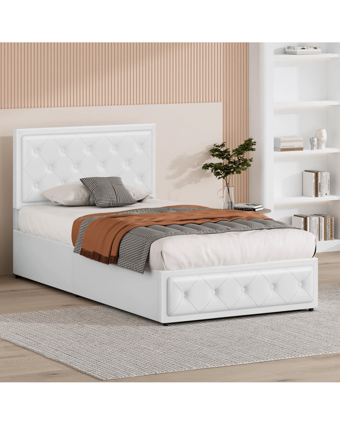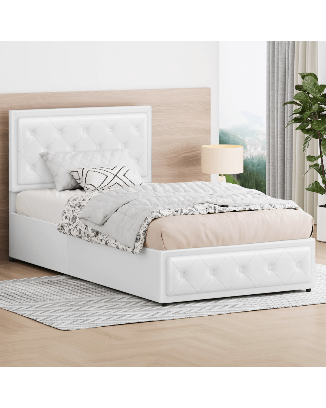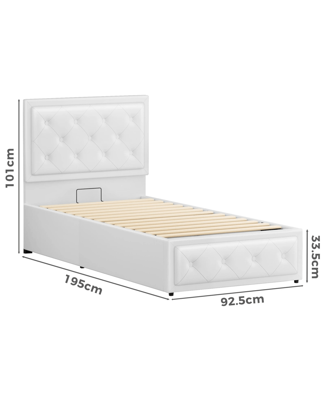 Sold by Aussie Union GroupAlfordson Bed Frame Single Size Gas Lift Storage Mattress Base Leather Dinana - White
