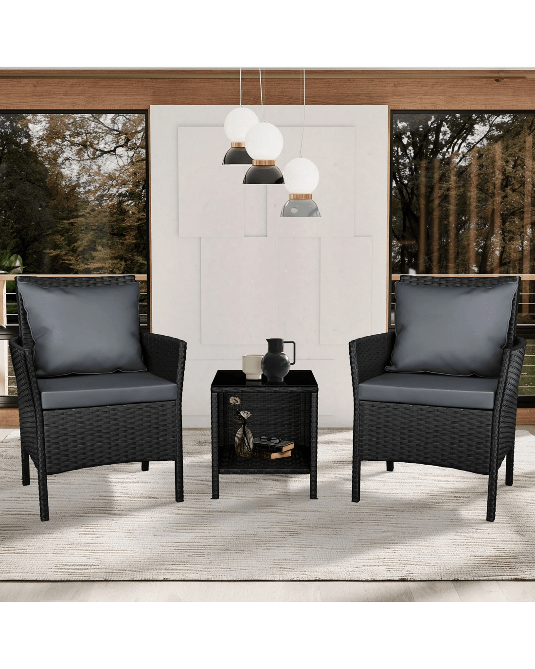 Sold by Aussie Union GroupAlfordson Outdoor Furniture 3PCS Wicker Bistro Set Patio Chairs Table - Black