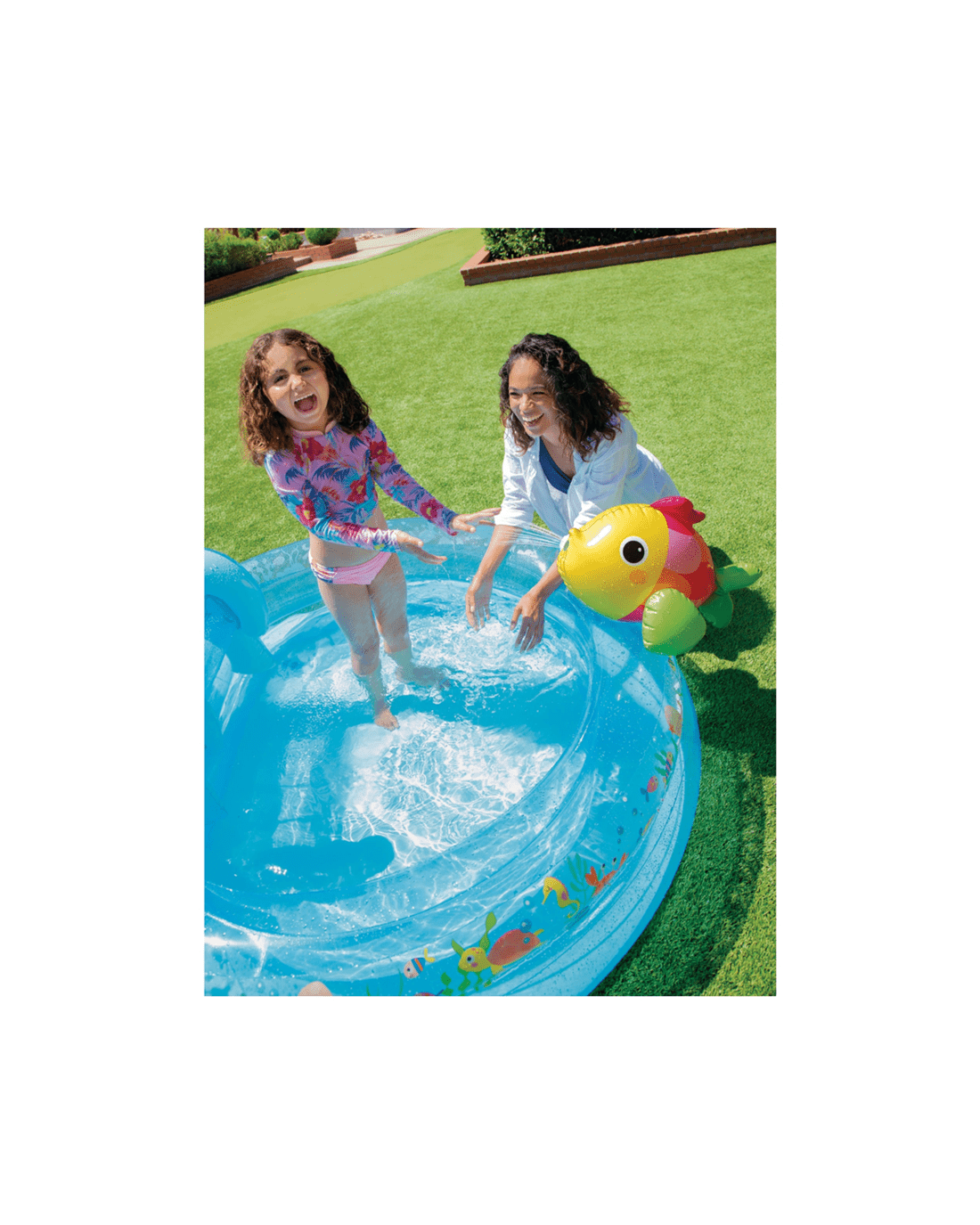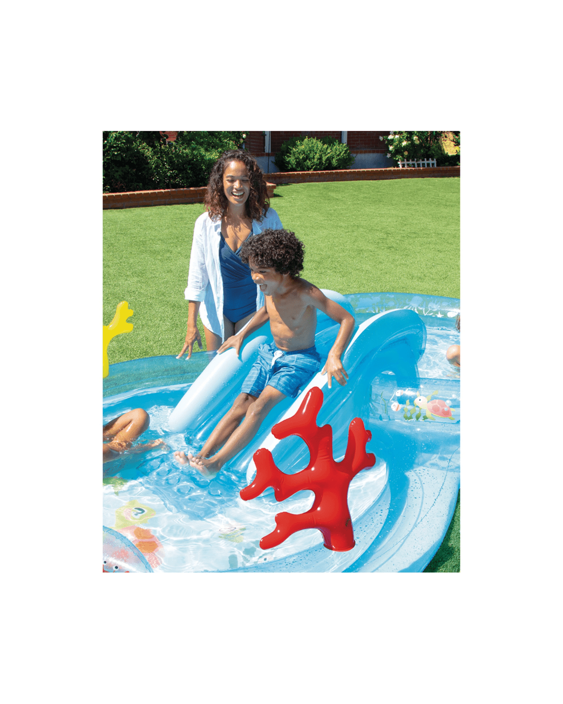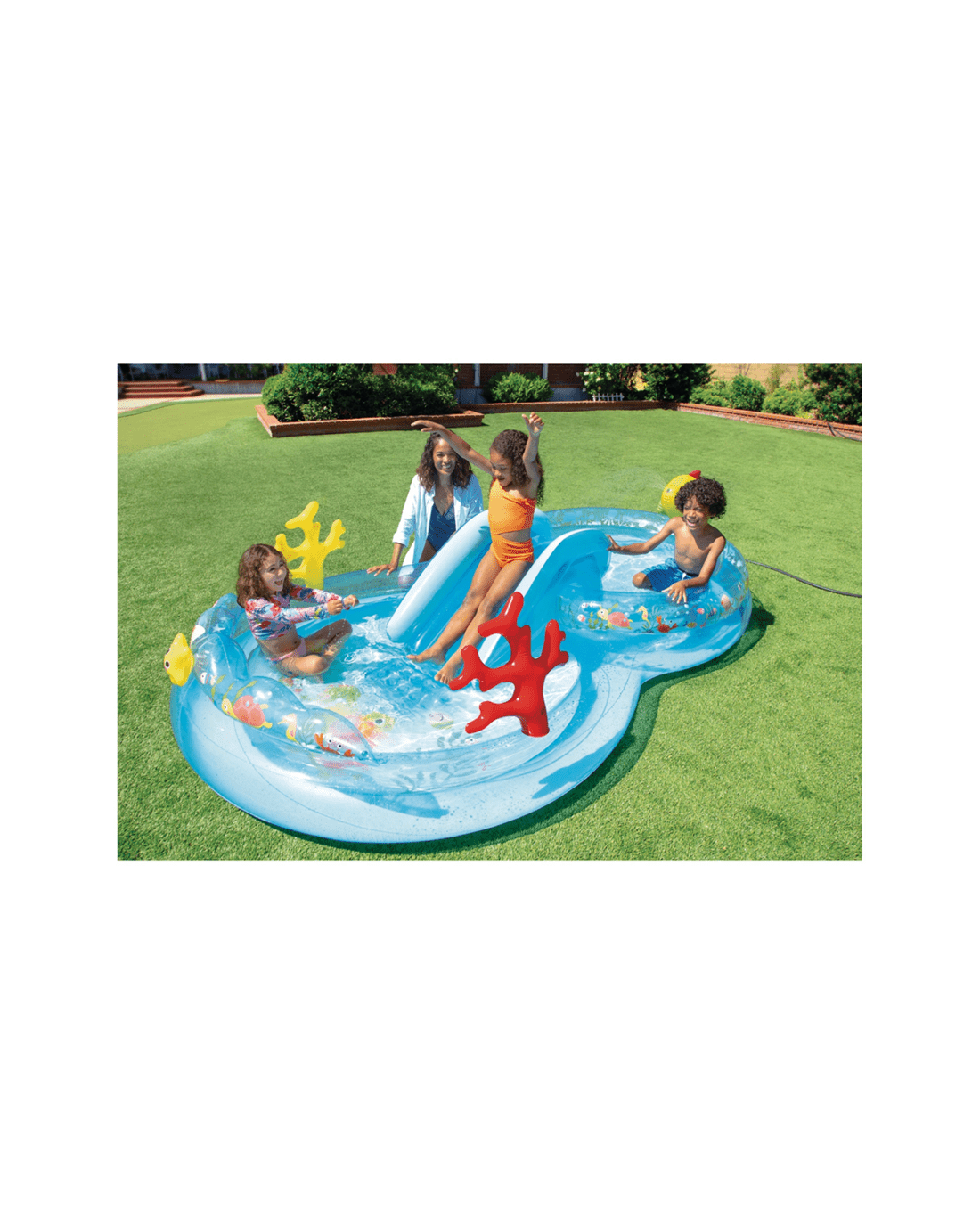 - Fun Water Play Design: Features colourful sea-themed decorations and a small slide to keep children entertained and active during summer.
