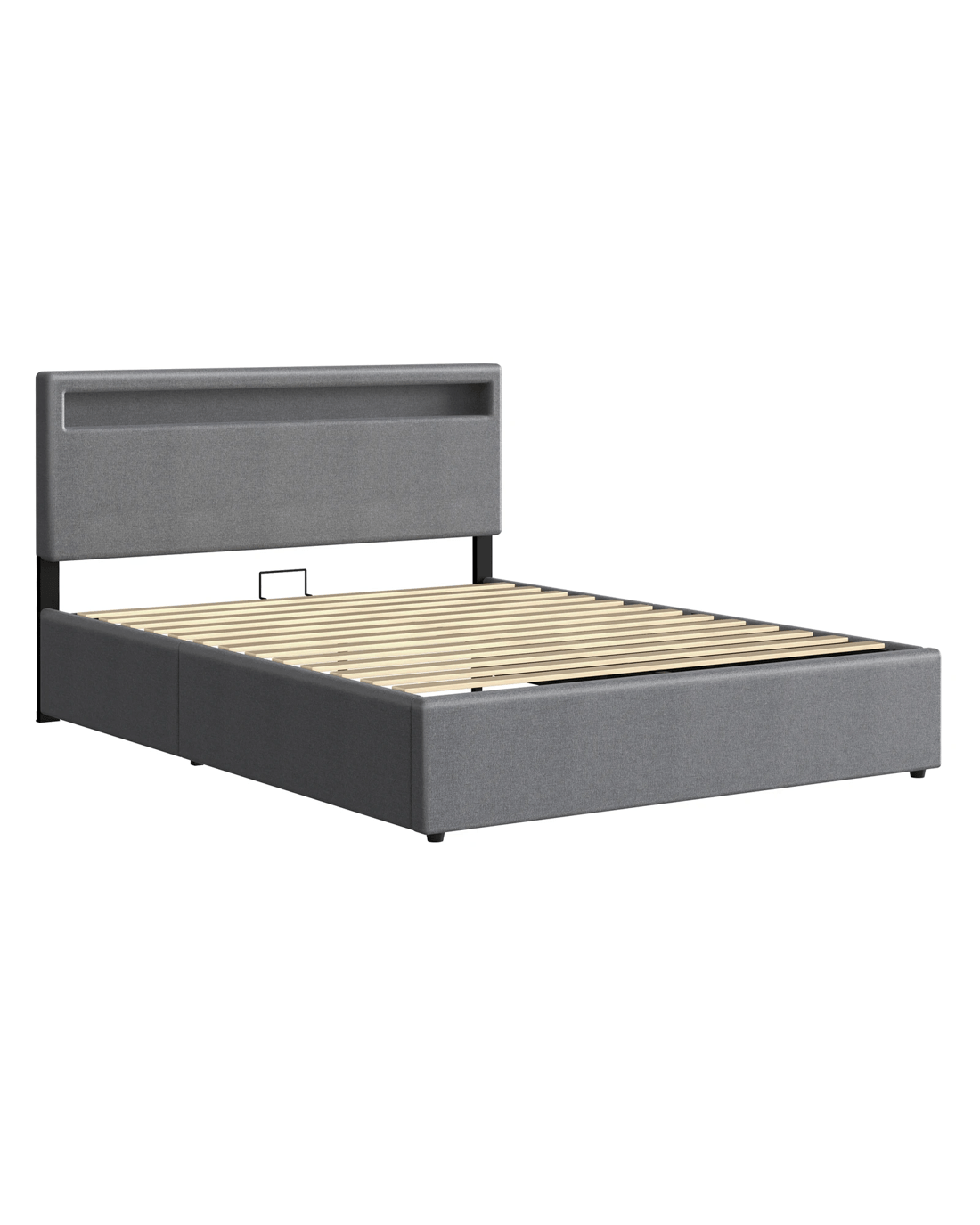 Sold by Aussie Union GroupAlfordson Bed Frame Double Size RGB LED Gas Lift Storage Base Luchino - Grey
