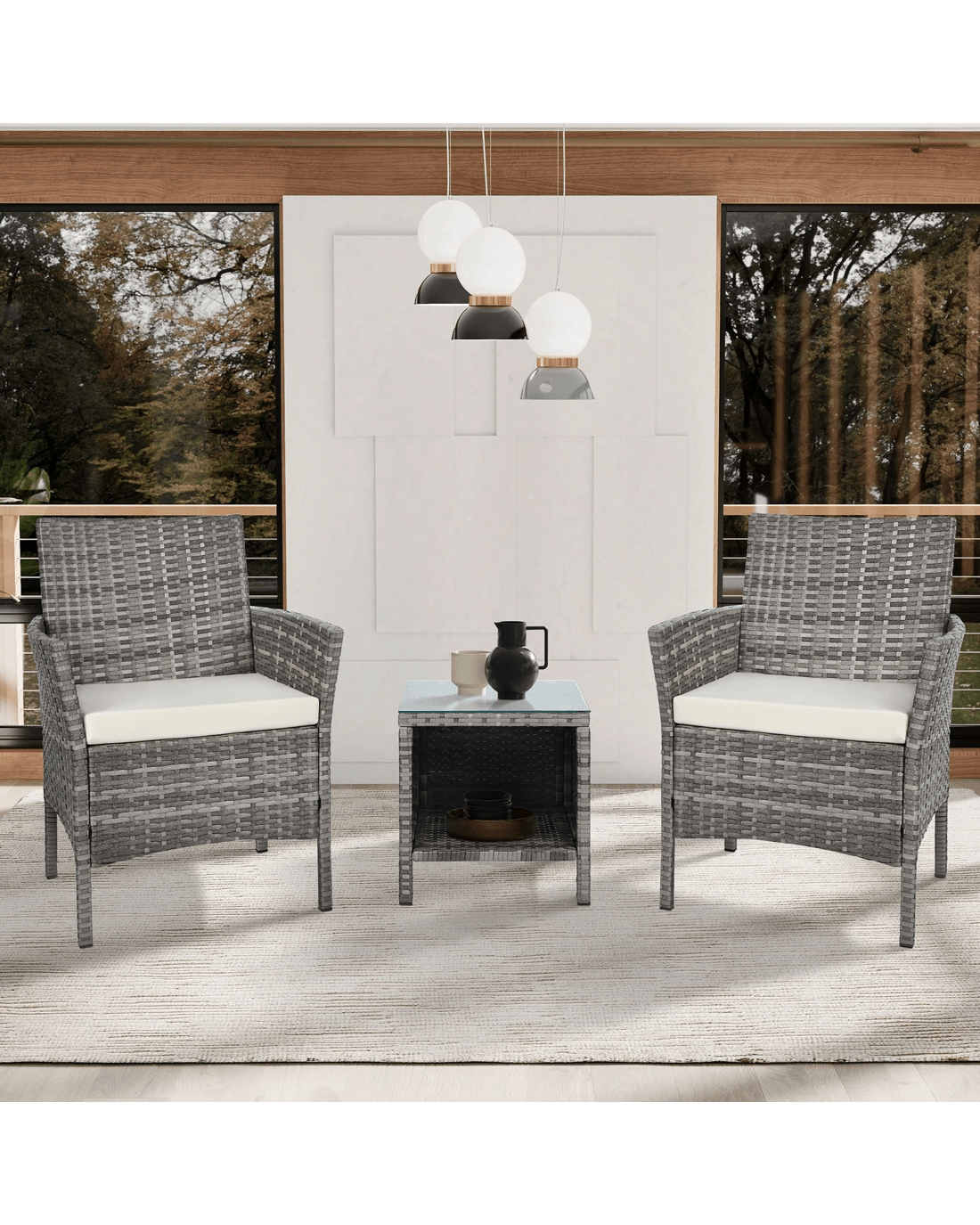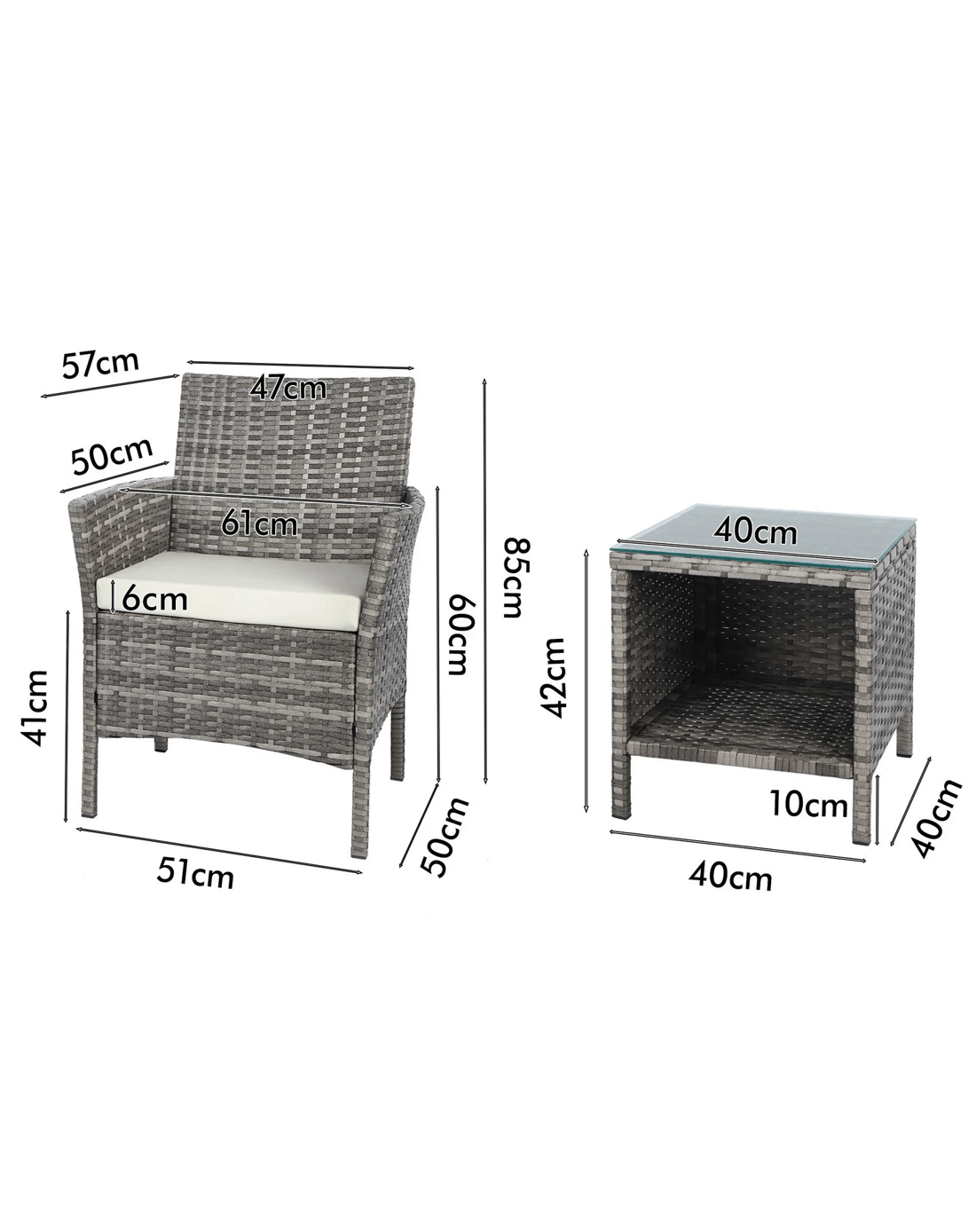 Sold by Aussie Union GroupAlfordson Outdoor Furniture 3PCS Wicker Bistro Set Patio Chairs Table - Grey