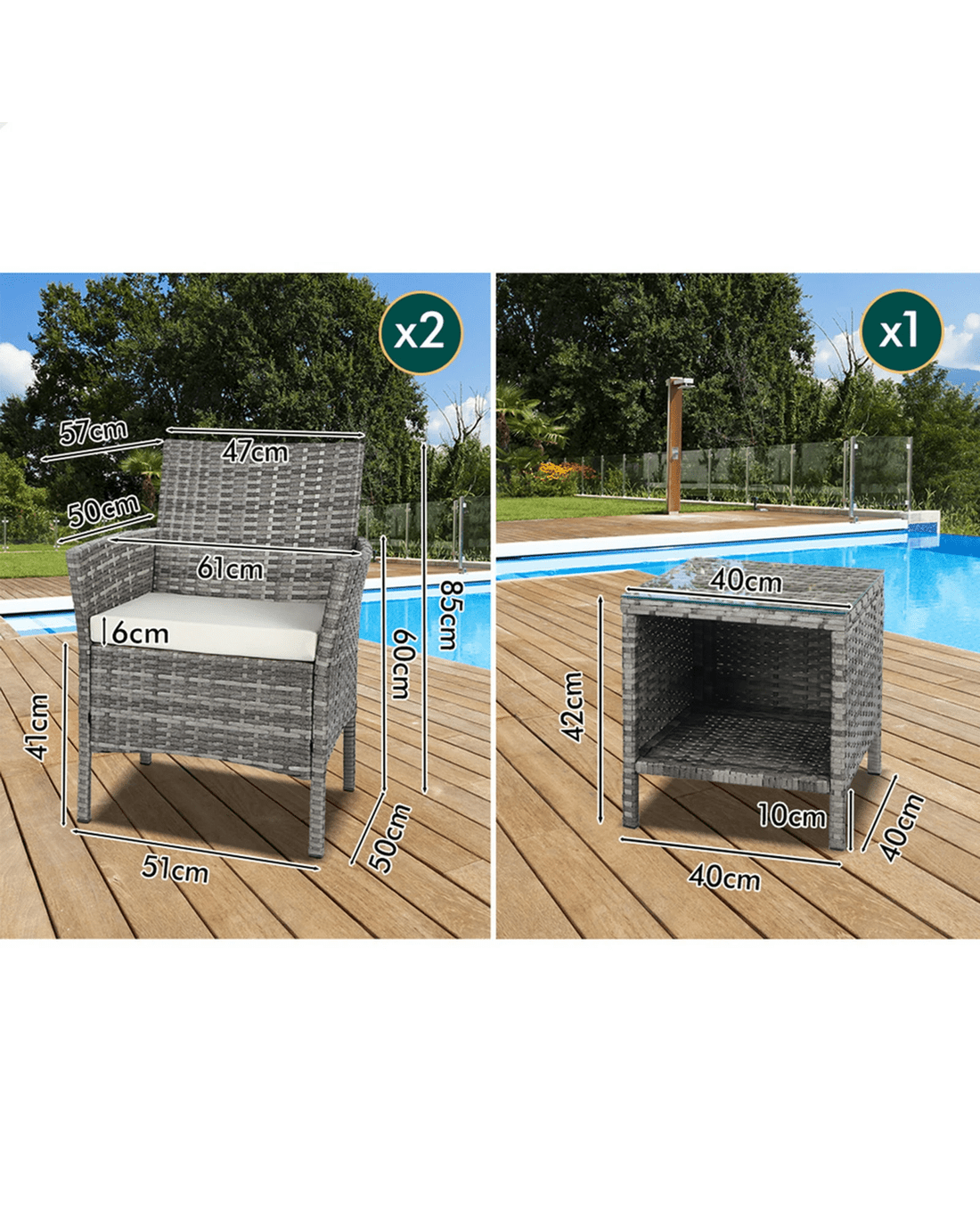 Who wants to host a party indoor whilst the sky is blue outside, or have friends over for coffee in the kitchen whilst the sun shines? Spending time outside in the fresh air not only reduces stress, but also improves our mood and sharpens our focus. With our ALFORDSON 3-Piece Outdoor Bistro Set, it will surely bring comfort and relaxing time to you and your family.