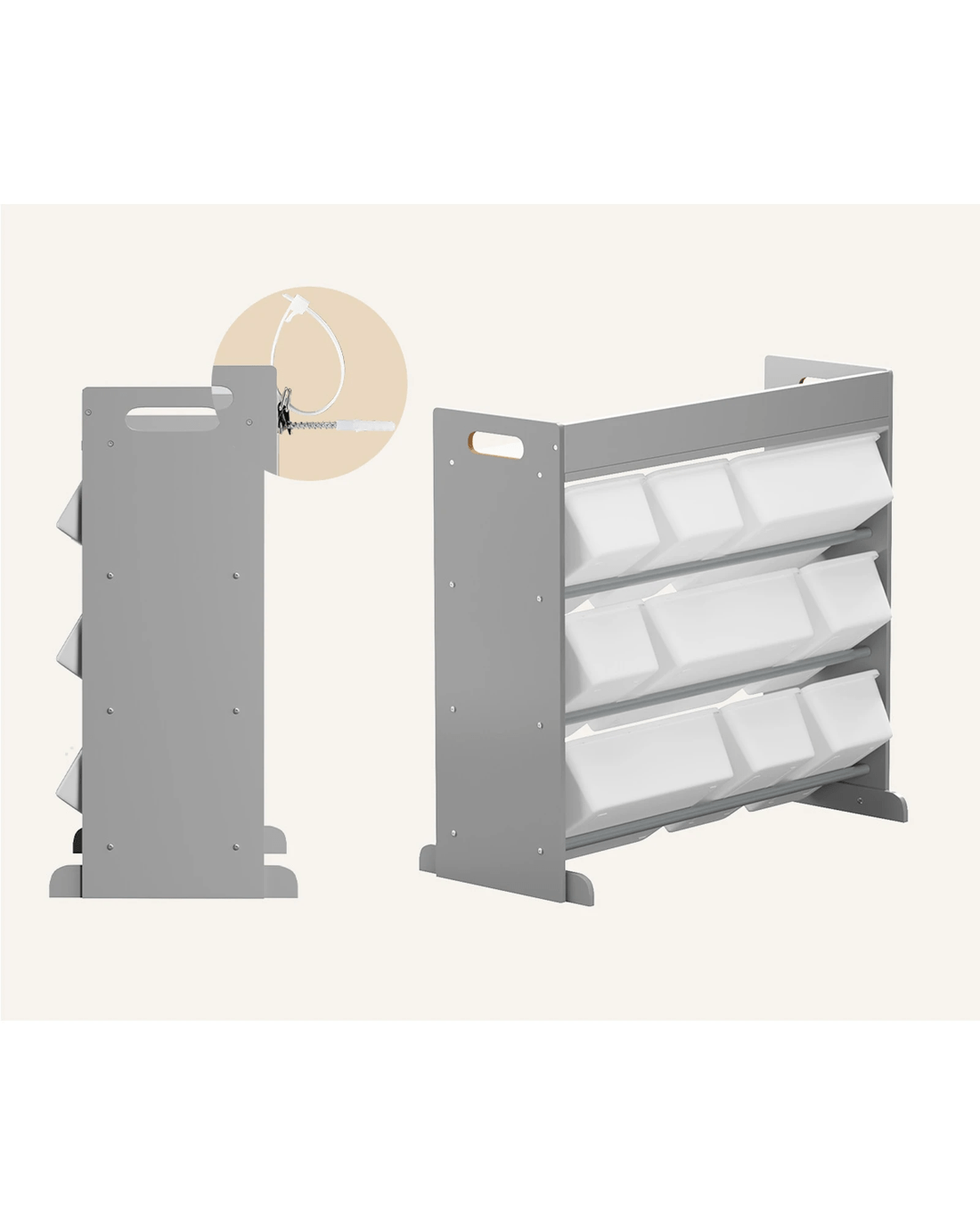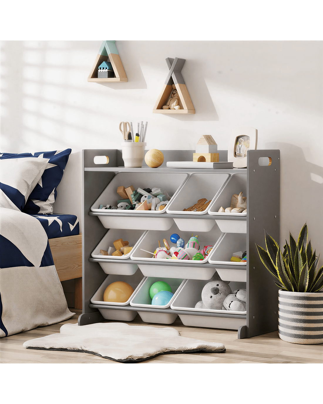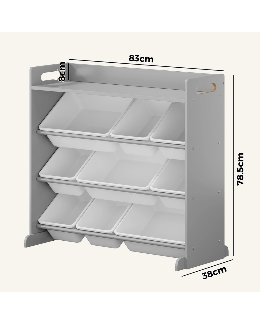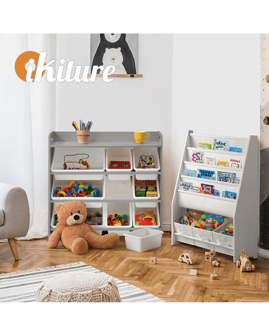 Sold by Kamprad's Oikos 1943Oikiture 9 Bins Kids Toy Box Bookshelf Storage Organiser Display Shelf - Grey