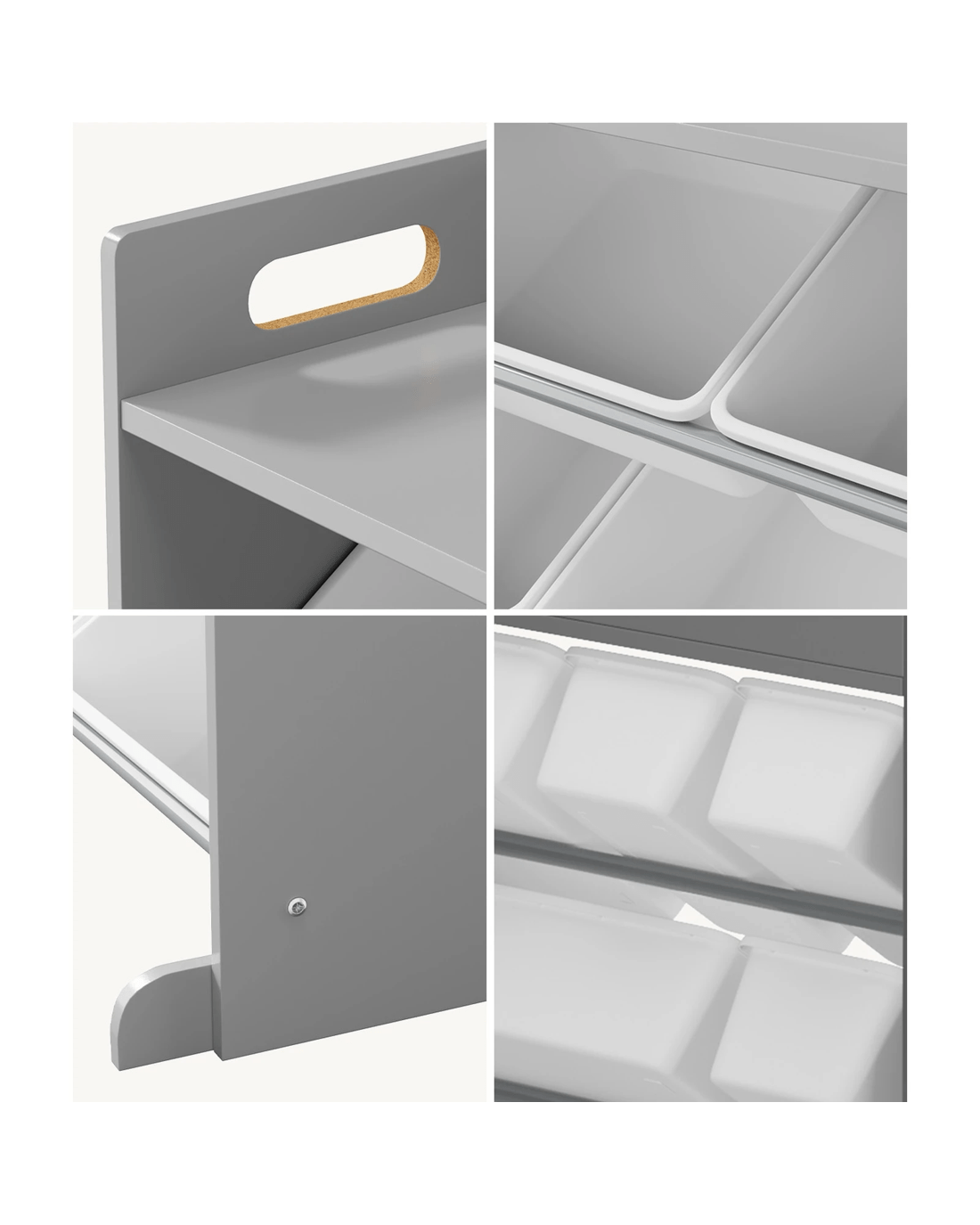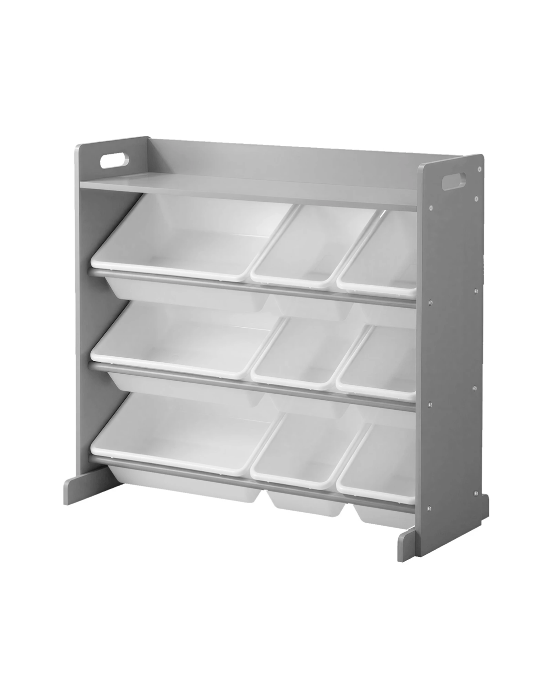 Comprising an array of 9 storage bins with two different sizing the 4-tier storage organiser lets you store an assortment of items, ranging from toys to books to games. Large or small, the storage bins can be easily labelled and assigned for convenient keeping and retrieval. And if desired, the bins can be removed and brought to any location and returned to their original placement later. Better still, you can arrange the large and small bins on the 4-tier rack in any way that fits your fancy. And more display space is found at the top with raise surrounds to ensure things do not go missing down the back. Plus, the fact that the entire ensemble is built to kid-friendly specifications with smooth edges and the use of eco-friendly materials make this storage organiser even more reassuring and safer for use.