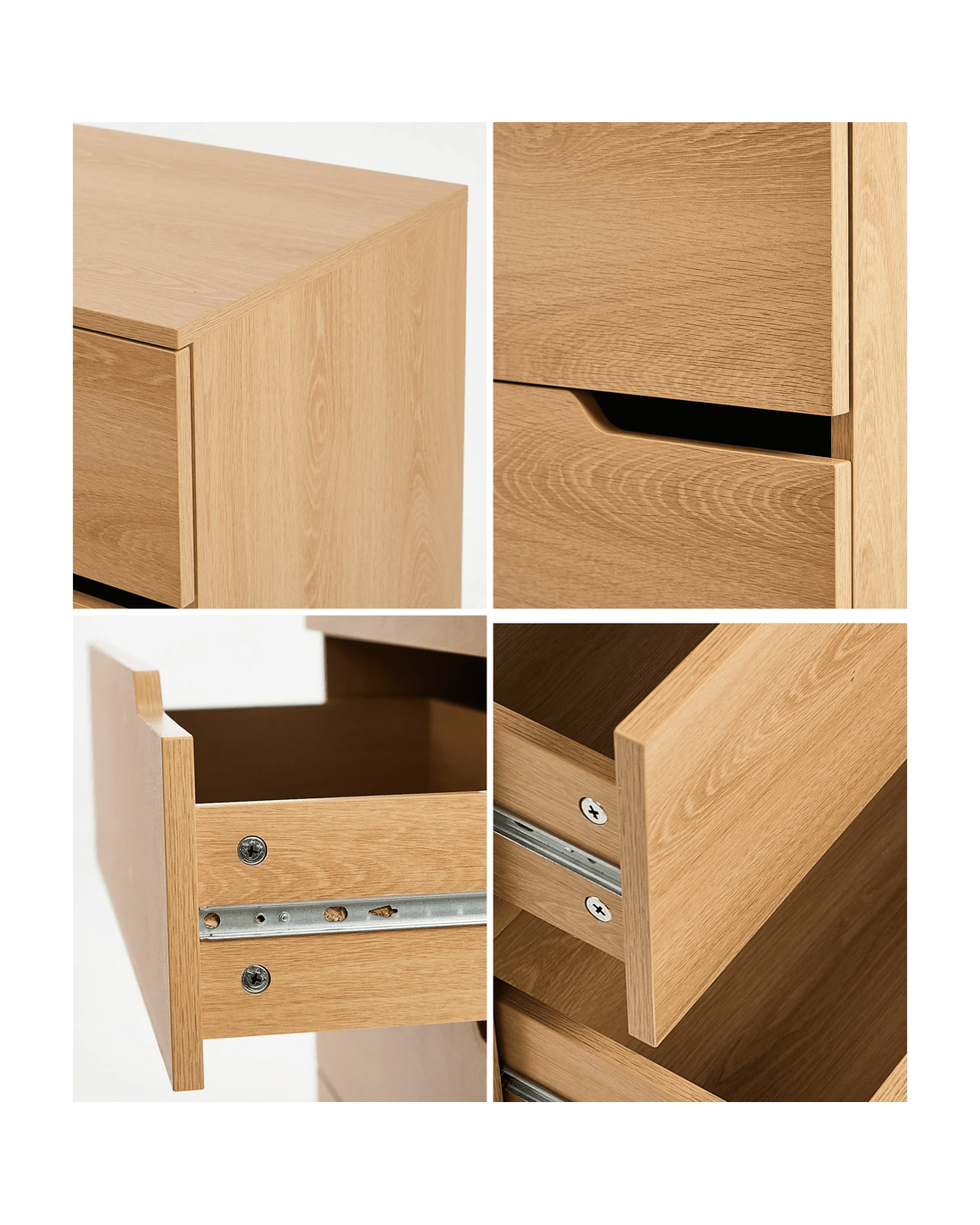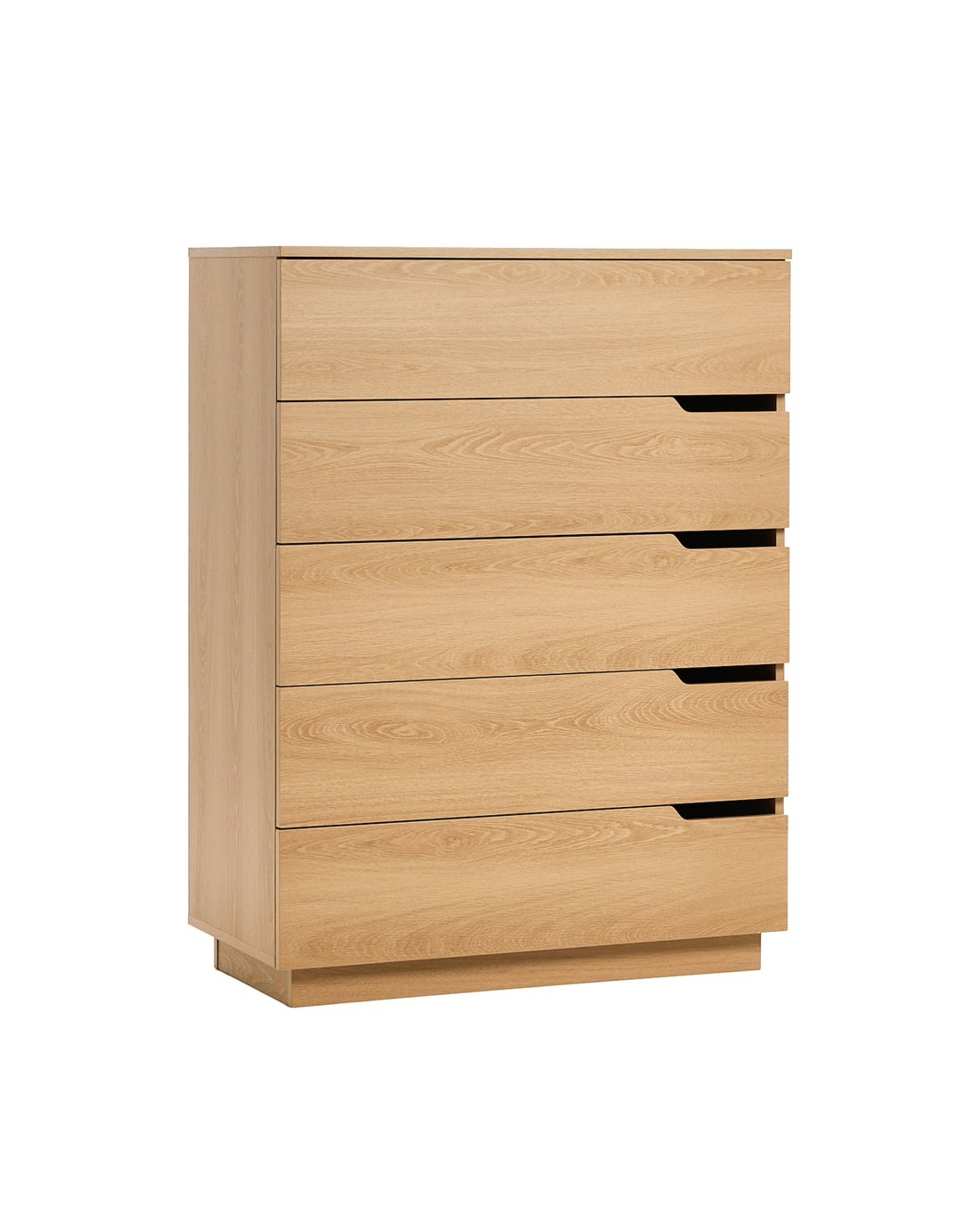 Constructed with durable 15mm particle board, the chest of drawers maintains a good sense of structure and durability. The full base support further adds to the strength of this unit with robust use.