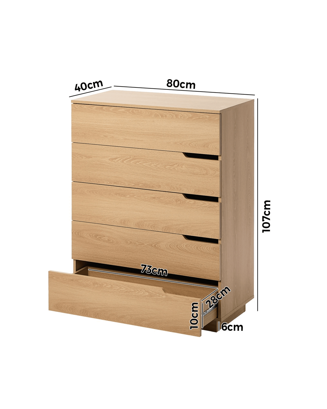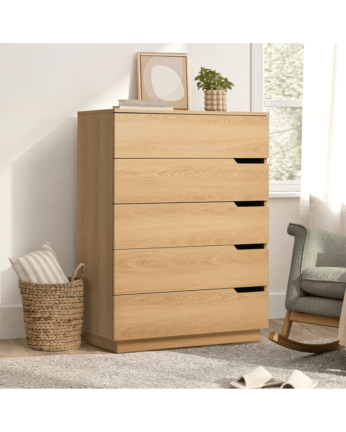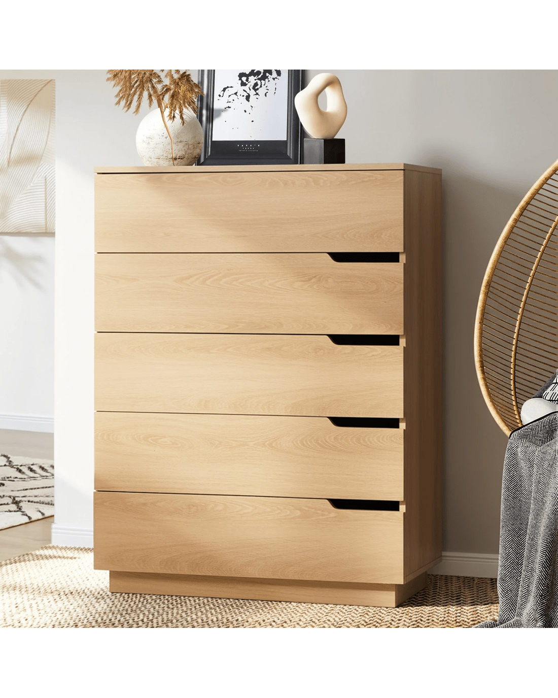 Sold by Kamprad's Oikos 1943Oikiture 5 Chest of Drawers Dresser Tallboy Storage Cabinet Bedroom - Natural