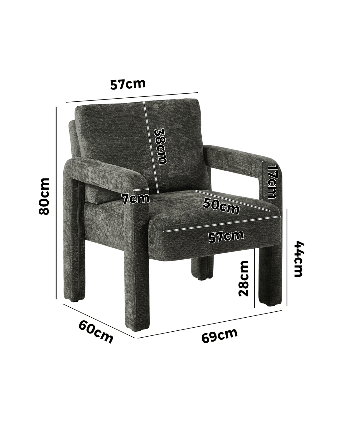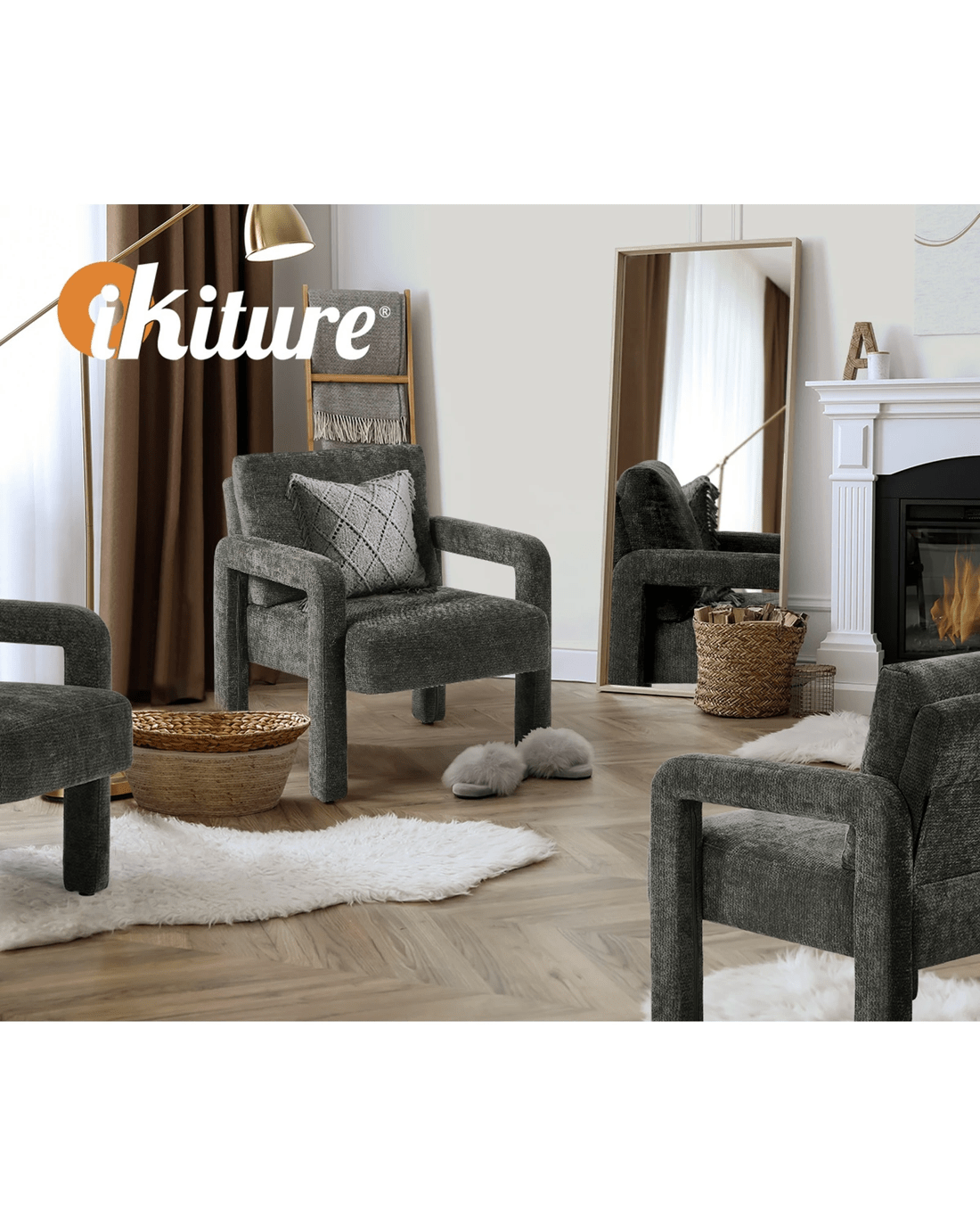 Sold by Kamprad's Oikos 1943Oikiture Armchair Velvet Accent Chairs 1 Seater Lounge Sofa Chair - Grey