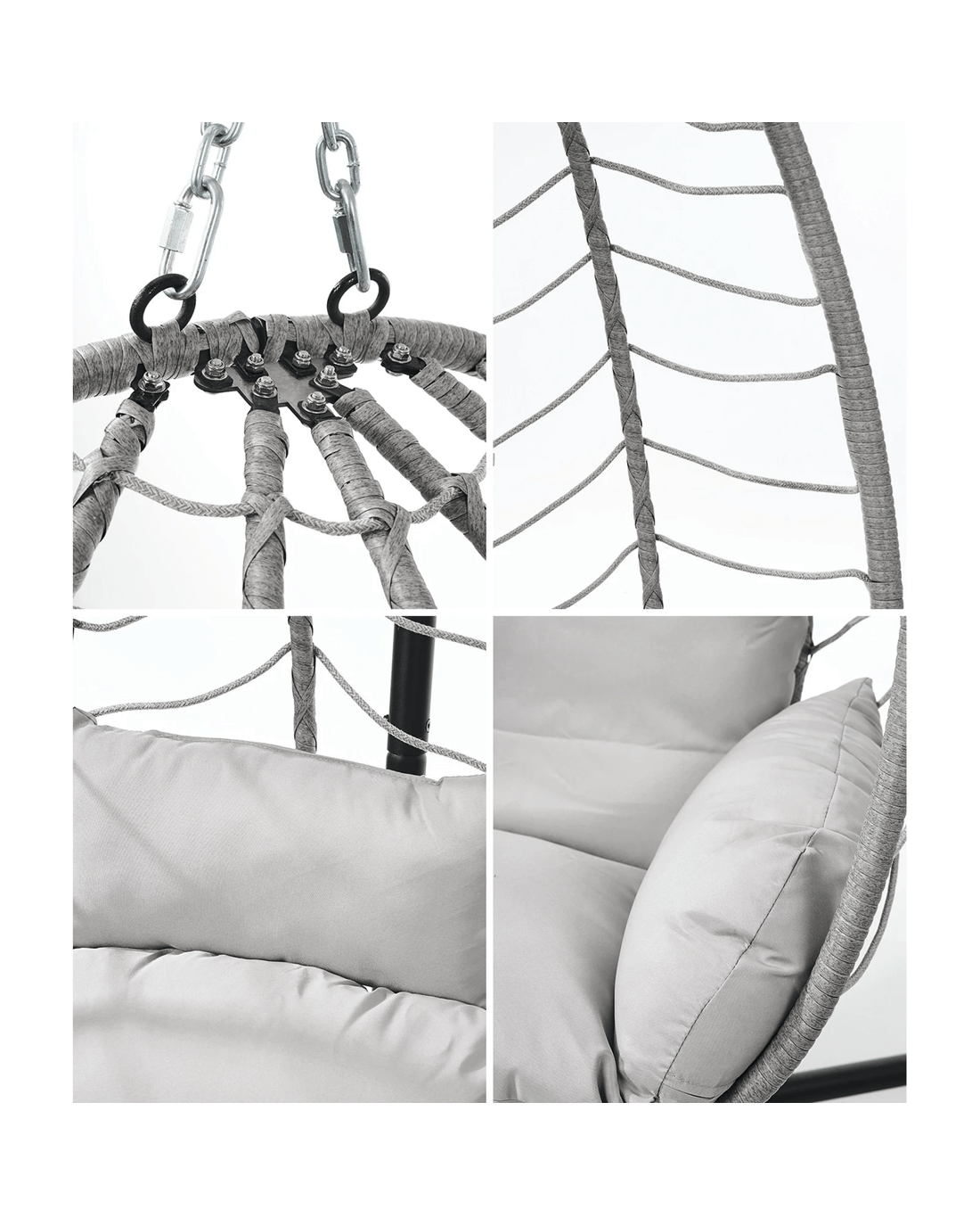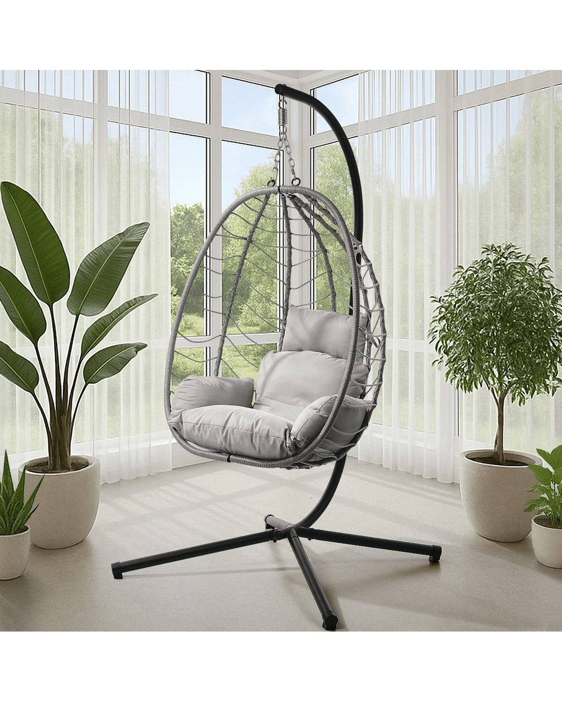 Used it outdoors or indoors, the hanging egg chair is a perfect addition to any home decor that desires to create an eclectic and bohemian-inspired lifestyle. Comfy cushions and pillows let you snuggle in as you indulge in your favourite reads or catching up with social media. Not least, every bit of the hanging egg chair is weather-resistant with removable pillow and cushion covers for easy cleaning and maintenance.