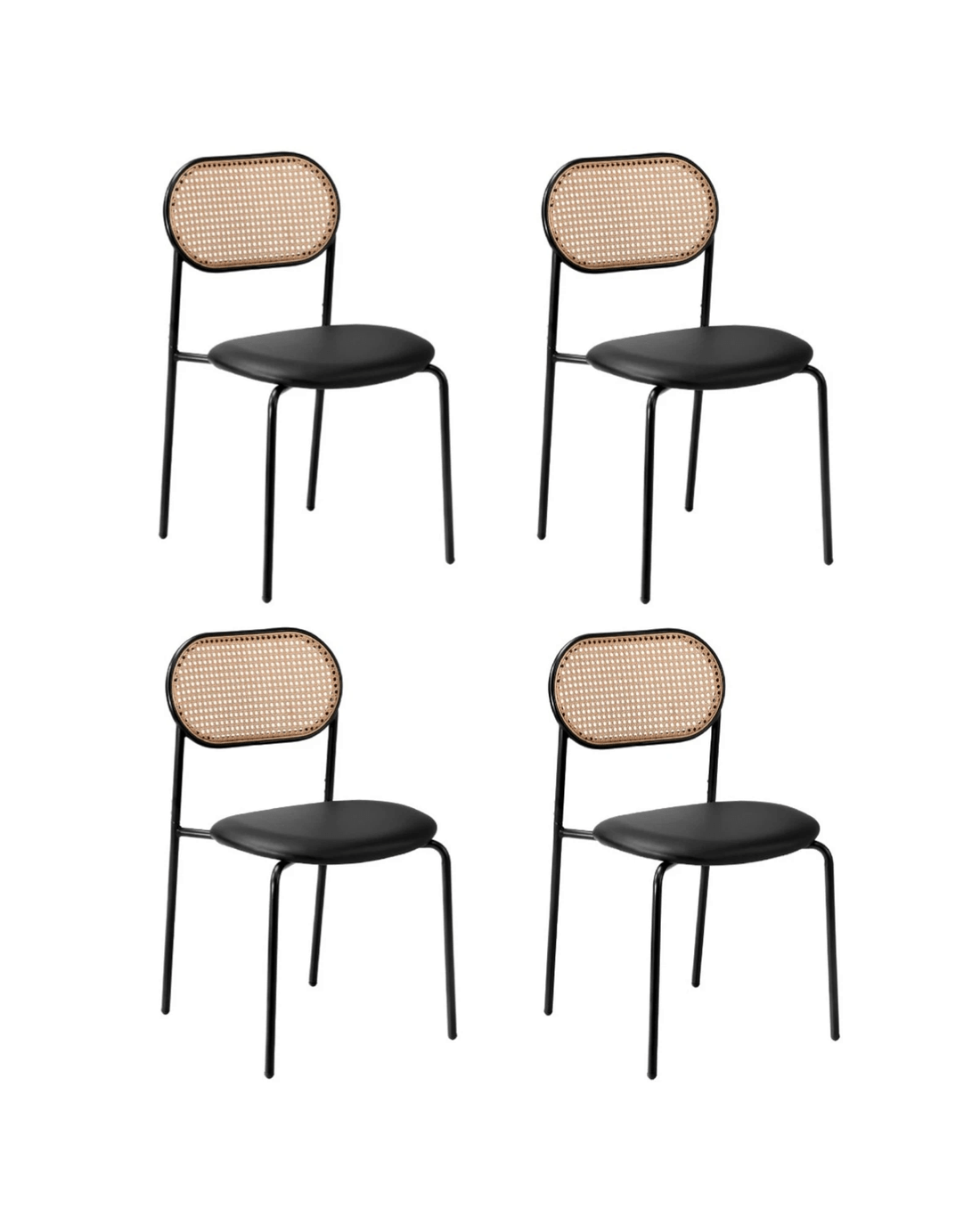 Sold by Kamprad's Oikos 1943Oikiture 4PCS Dining Chair Accent Chairs Rattan Furniture PU Leather - Black