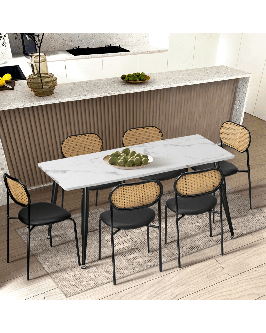 Why choose the ordinary when you can have something eclectic and unique? And that pretty much sums up the Oikiture Rattanista Dining Chair. As elegant as its profile depicts, our dining chair exudes all the right vibes for an aesthetic dining furniture that functions as well as it looks. The distinctive rattan backrest is meticulously matched to a rounded seat with PU Leather seat. You can rest assured it will not disappoint with the dining chair's firm and comfortable support courtesy of a rich high-density foam within. Elsewhere, the slim metal frame and legs complement the clean and uncluttered design that provides durable longstanding use for many dining experiences to come. Not least, with its neutral hues, the dining chair will certainly sit well with most home decor as its intended purpose or as multi-purpose seat in the house. Eat well. Sit classy with the Oikiture Rattanista Dining Chair.