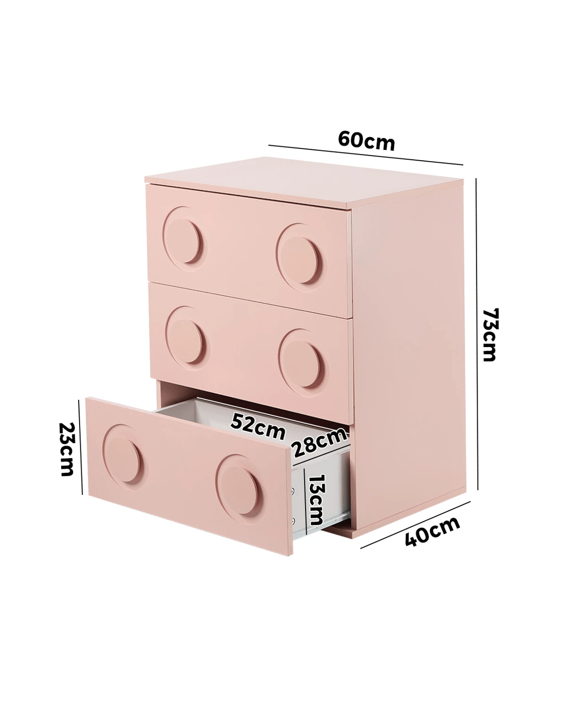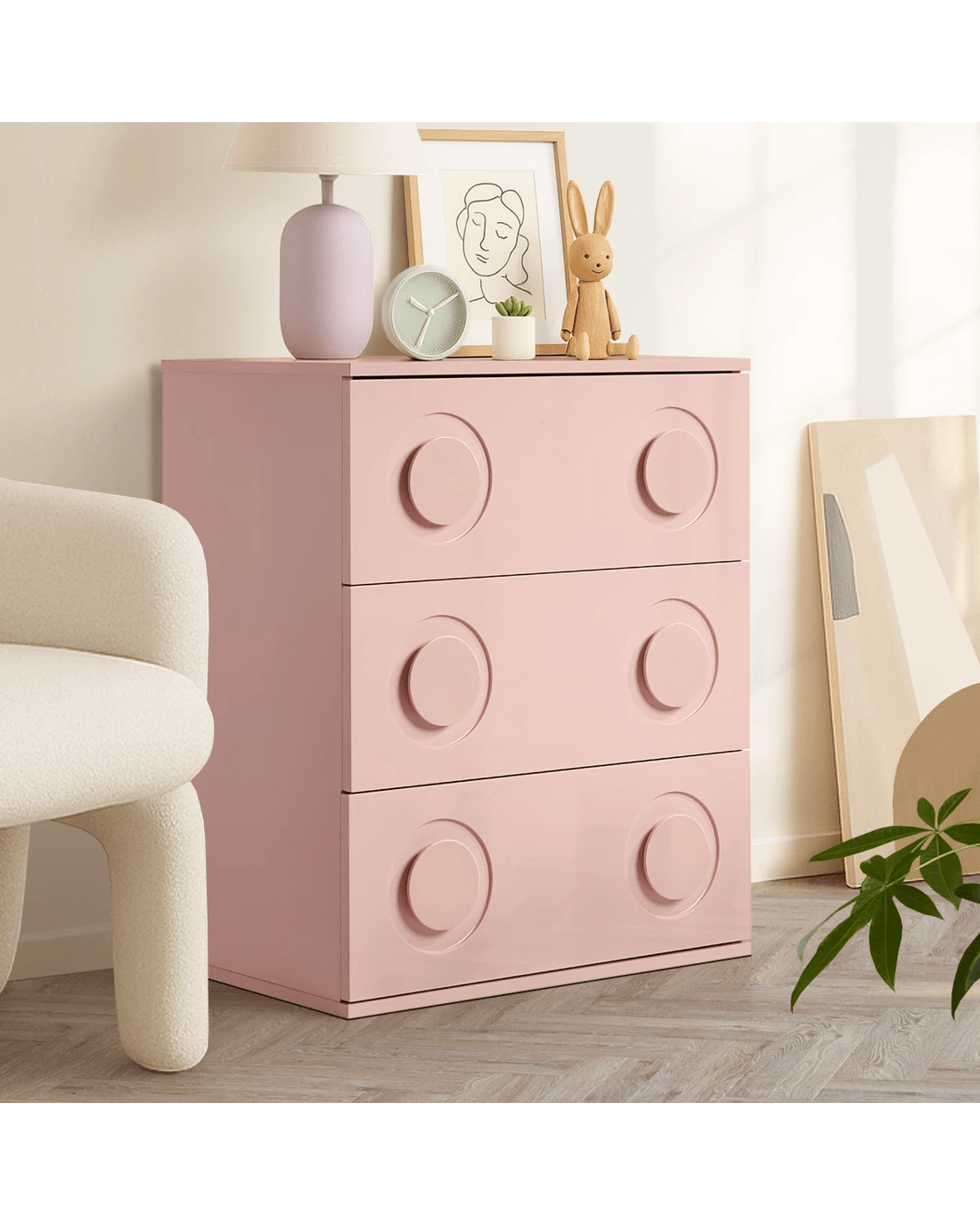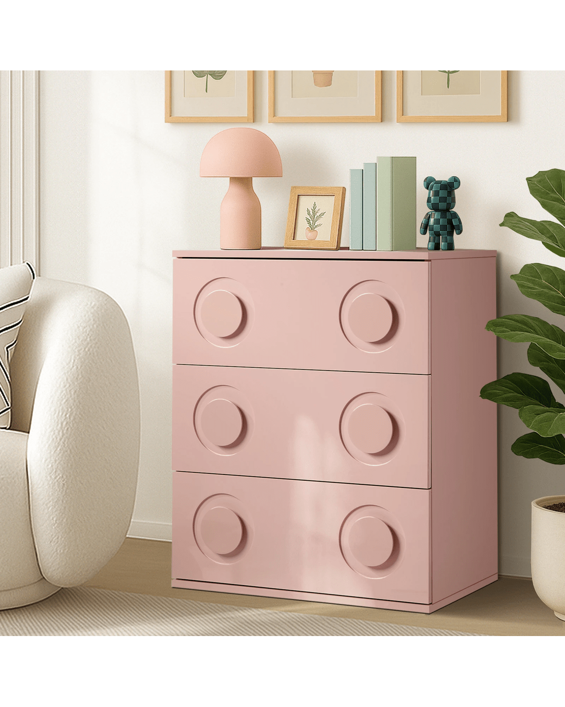 Sold by Kamprad's Oikos 1943Oikiture 3 Chest of Drawers Spacious Cabinet Bedroom Dresser Nightstand - Pink