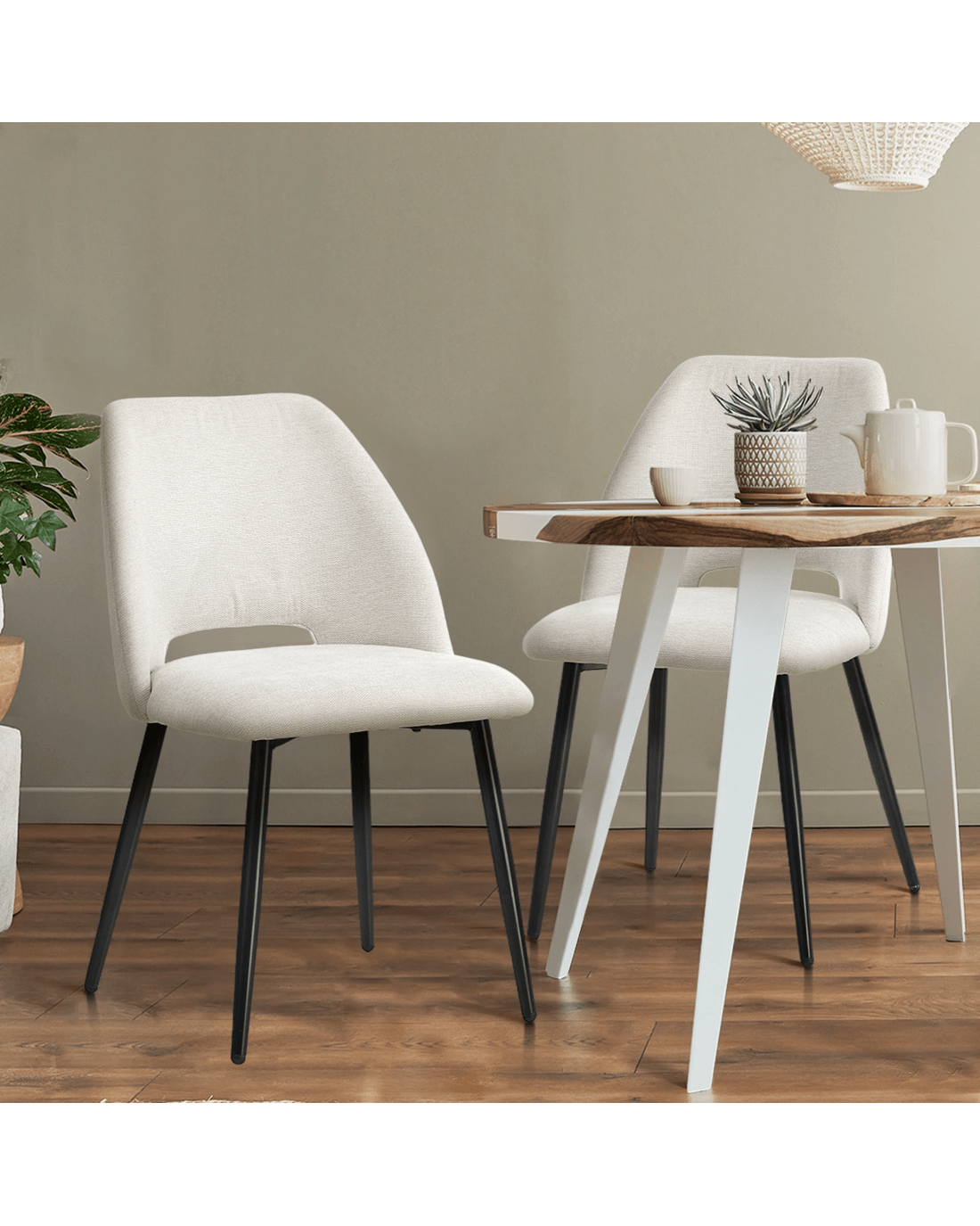 Sold by Kamprad's Oikos 1943Oikiture 2x Dining Chair Accent Chairs Linen Fabric - Beige