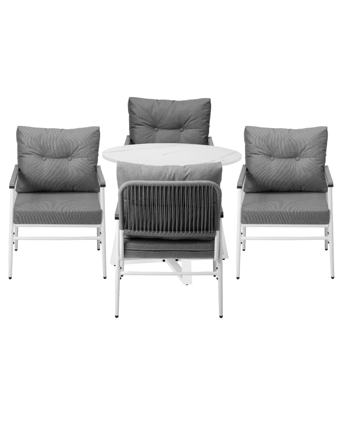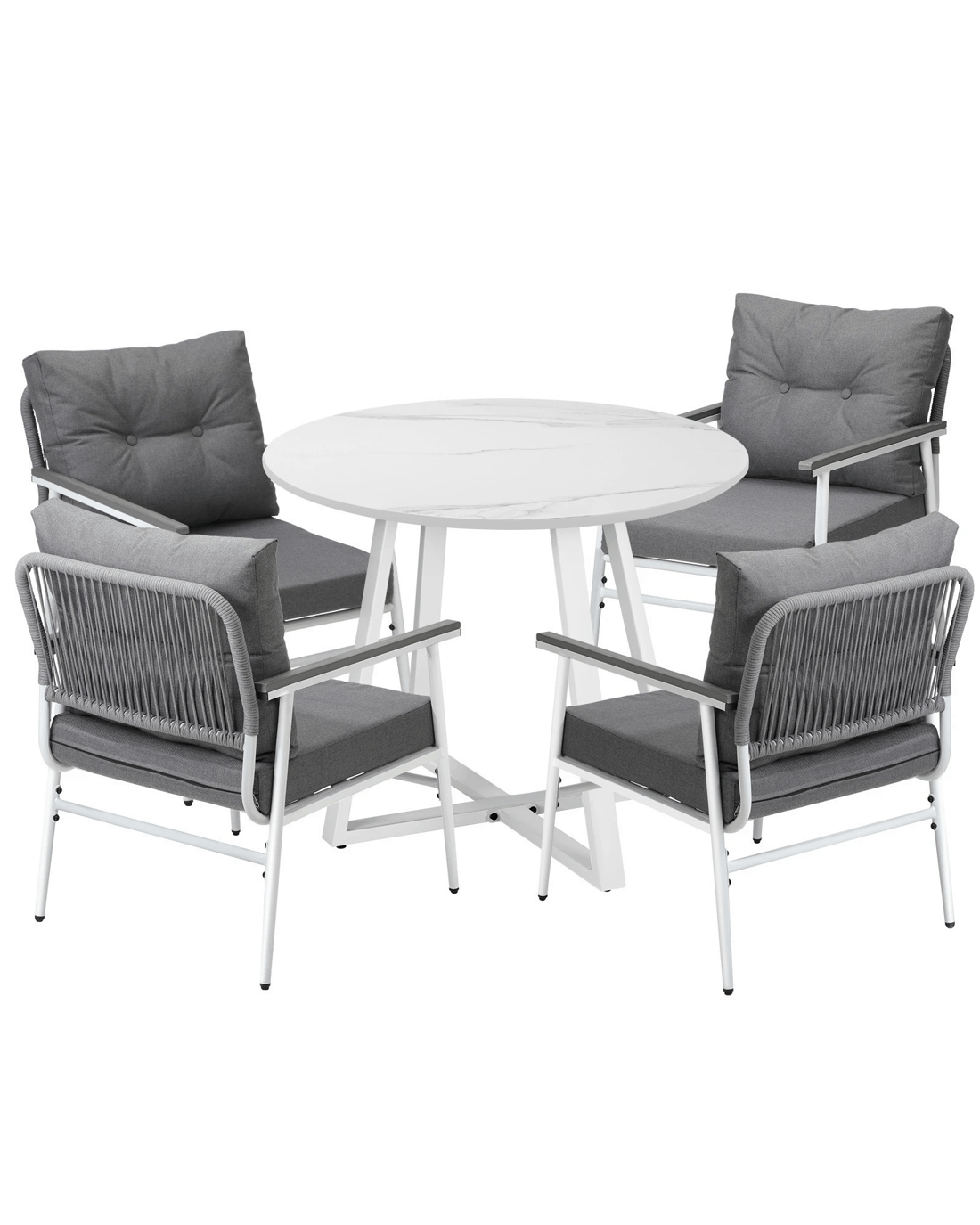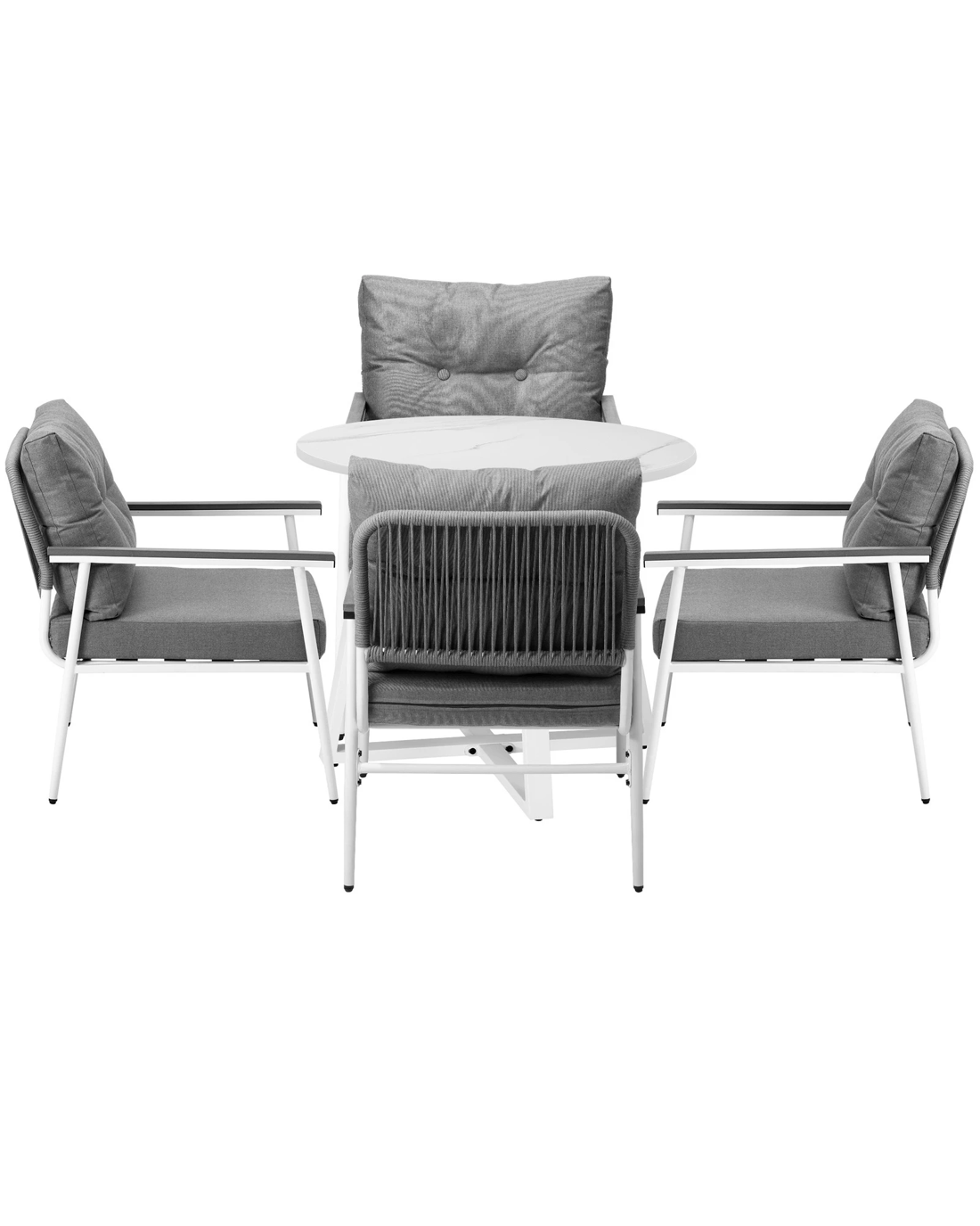 Sold by Kamprad's Oikos 1943Livsip Outdoor Dining Setting Patio Furniture Set 4 Seater Round Table Chair - White