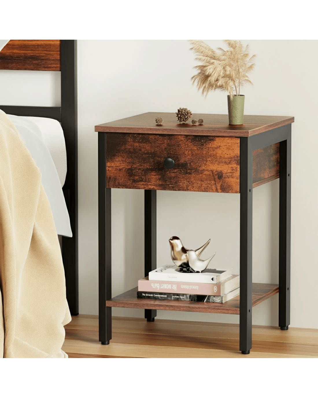 Sold by Aisle SixArtiss Bedside Table Nightstand 1 Drawer Shelves Walnut - Brown