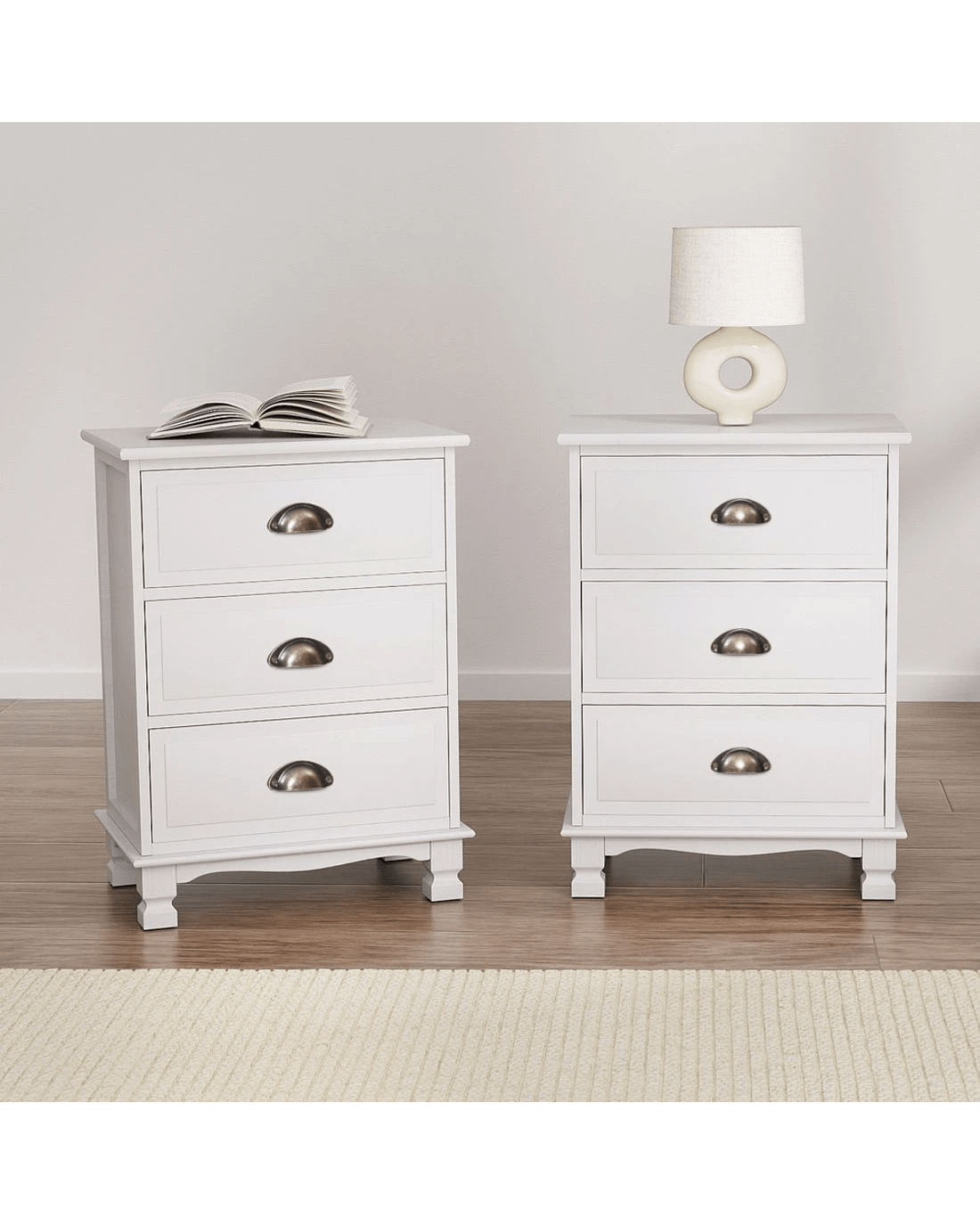 Sold by Aisle SixArtiss 2x Bedside Table 3 Drawers Vintage - White