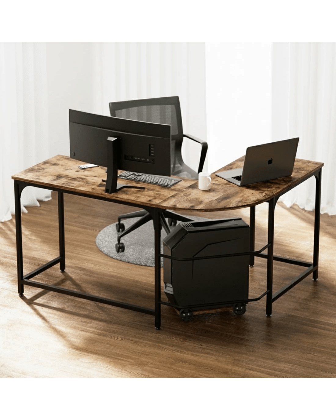 Having an efficient working space is a key to improving productivity and the ability to focus. If you are looking to set up your workspace but need something sophisticated and practical, bring home our Artiss computer desk that's specially designed for smaller spaces. It makes an ideal purchase for any home office set up or study room. Our computer desk is the epitome of utmost simplicity and maximum functionality. It's meticulously crafted with a thick particle board and solid powder-coated steel frame to ensure long-lasting and robust use. With an L-shaped design, the desk allows you to have your attention to everything in one glance and fits in corners. It has ample storage space with a wide desktop to accommodate your table lamp, pen stand, and other knick-knacks. The desk also features safe and smooth edges to prevent accidental injury, anti-slip base, built-in floor protectors, convenient and practical design and is equipped with a bonus CPU stand. A piece designed with total efficiency and practicality in mind, you are sure to fall in love with our Artiss computer desk.