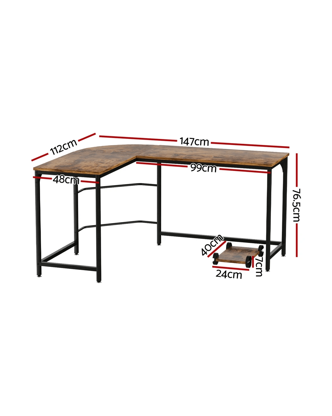 Sold by Aisle SixArtiss Computer Desk L-Shape CPU Stand 147CM - Brown