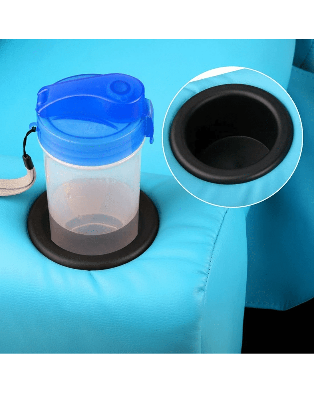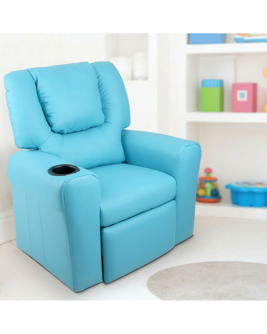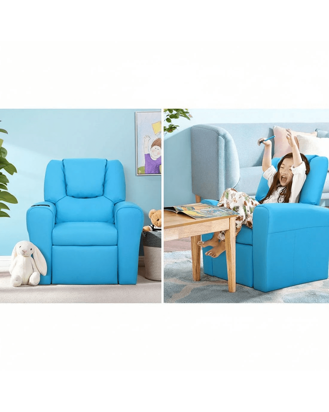 Made of PU leather and upholstered with 9cm of plush cushioning, this Kids Recliner offers total luxury for your child to sit back and relax, read, listen to music, watch TV or play games on mobile devices comfortably. The wide armrests provides for great arm support while the sturdy construction makes it very child-safe and durable. And with the built-in cup holder, the Recliner is ever ready to have your child's favourite drink at close hand.