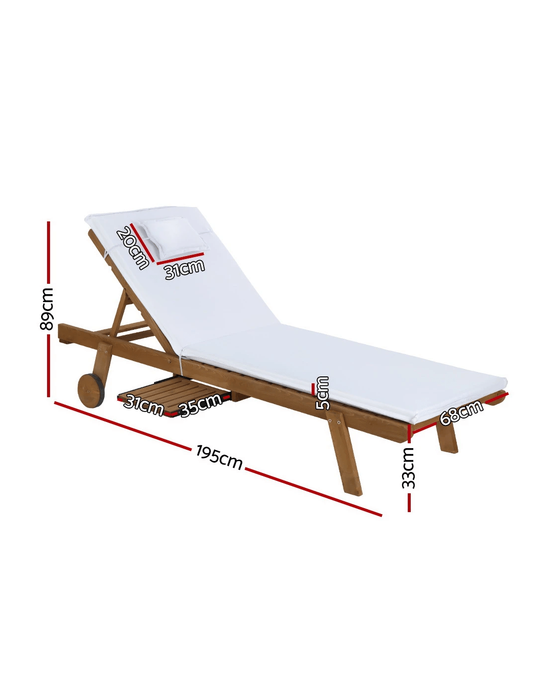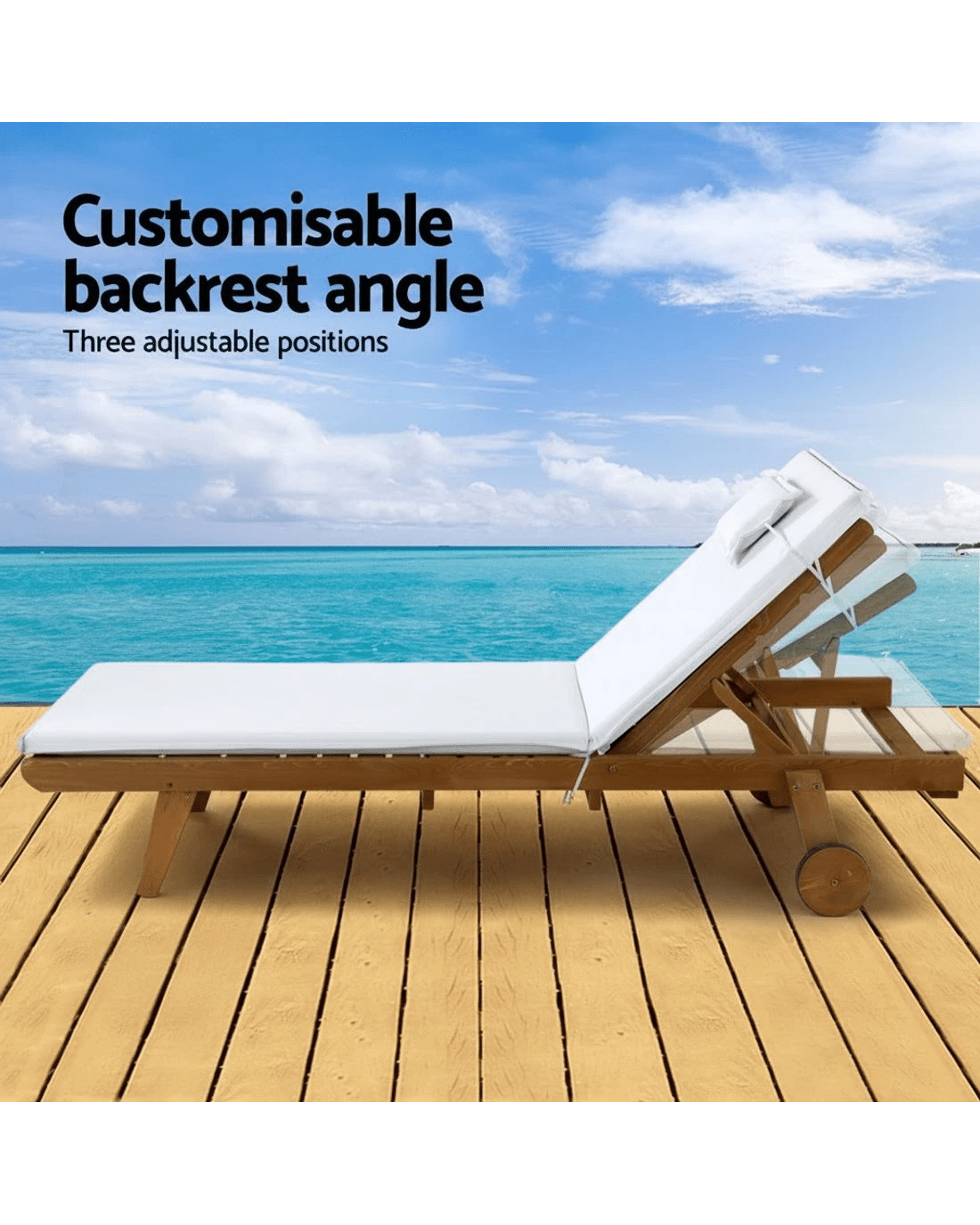 Sold by Aisle SixGardeon 2x Sun Lounge Wooden Lounger Outdoor Furniture Day Bed Wheel Patio - White