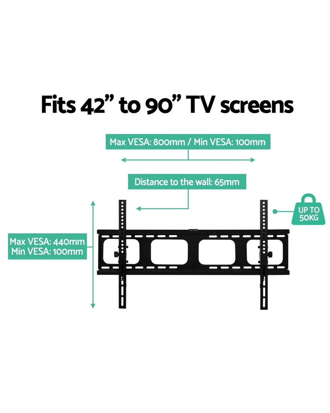 With universal compatibility with most major TV brands, our Artiss TV Wall Mount is designed to add a seamless touch to your entertainment set-up. Crafted in solid black powder-coated metal, the TV wall mount features a 1.5mm thick frame and has flexible mounting with various VESA measurements to firmly affix any TV screen from 42" to 90" wide. Plus, the wall mount features slimline brackets that sit closer to the wall and allows the TV to be tilted upwards or downwards of up to 150. In essence, this movement makes for easy access of cables behind the TV without losing that sleekness as well as setting your preferred viewing angle. Plus, the brackets also suit the standard Australian stud spacings of 600mm and 400mm found in most homes. Not least, a built-in safety bolt lock keeps the TV firm and steady at all times.