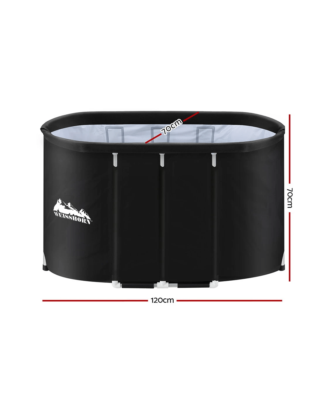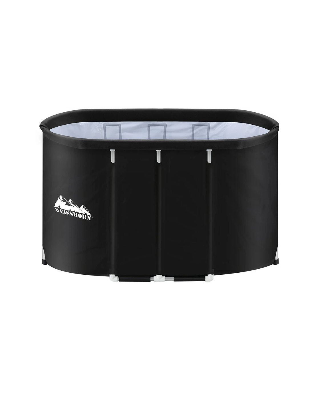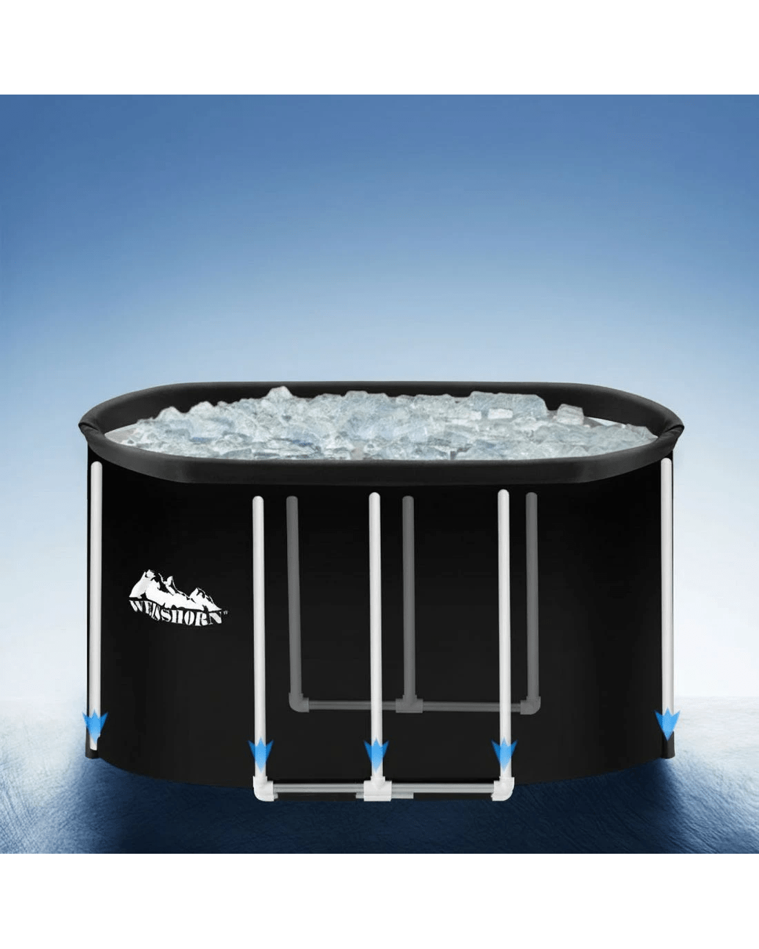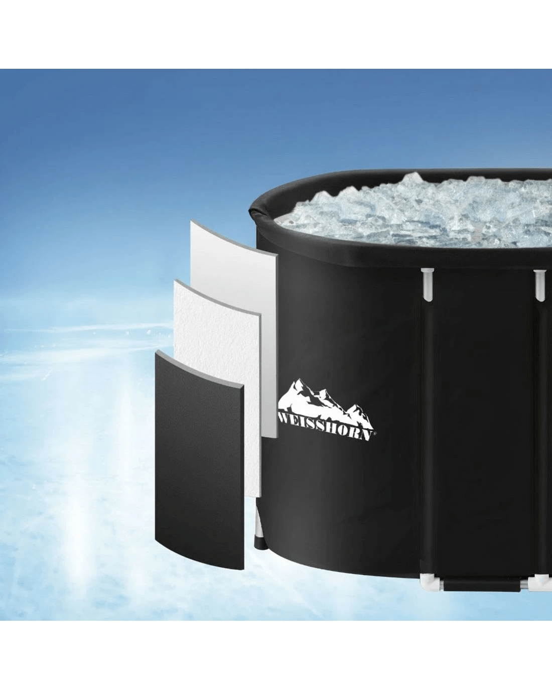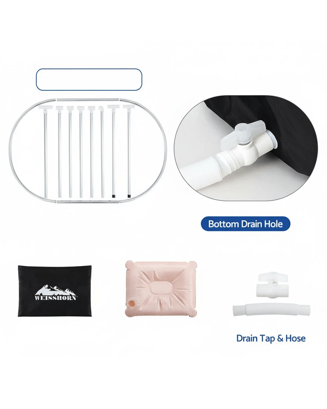 Constructed from durable PVC material, this Weisshorn portable ice bath tub features a convenient drain tap with hose and bottom drain hole. It includes a comfortable seating cushion, cloth cover, and bonus repair kit. Suitable for both indoor and outdoor use.