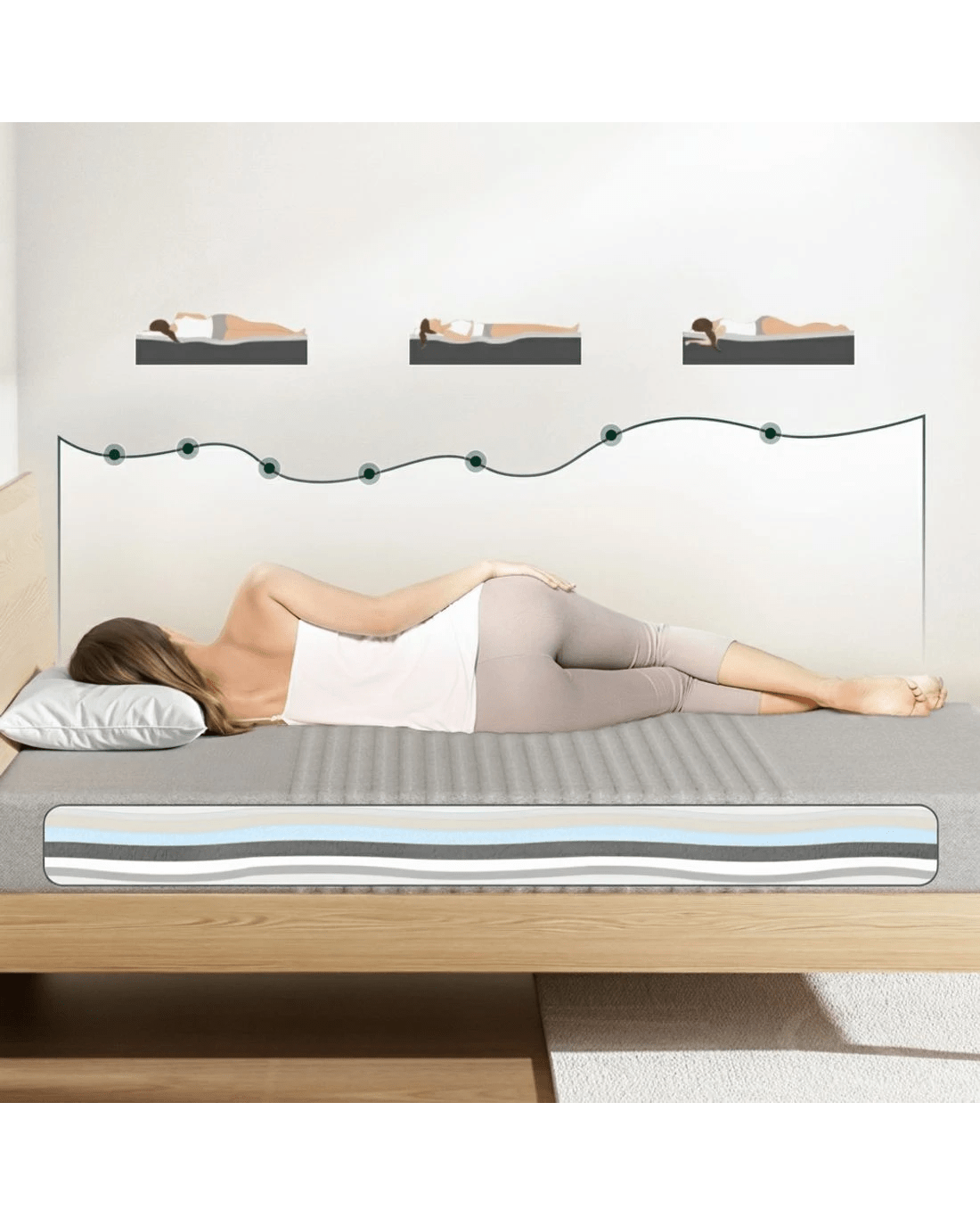 Foam Material: Cooling gel-infused memory foam, charcoal PU foam,7 Zone CNC cutting foam