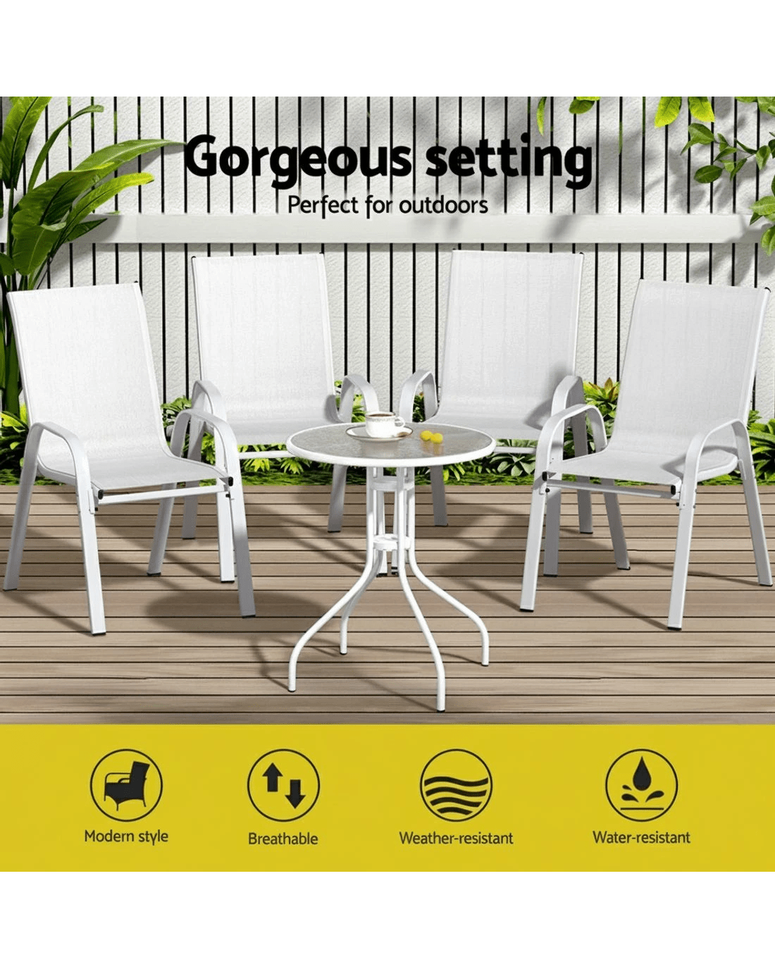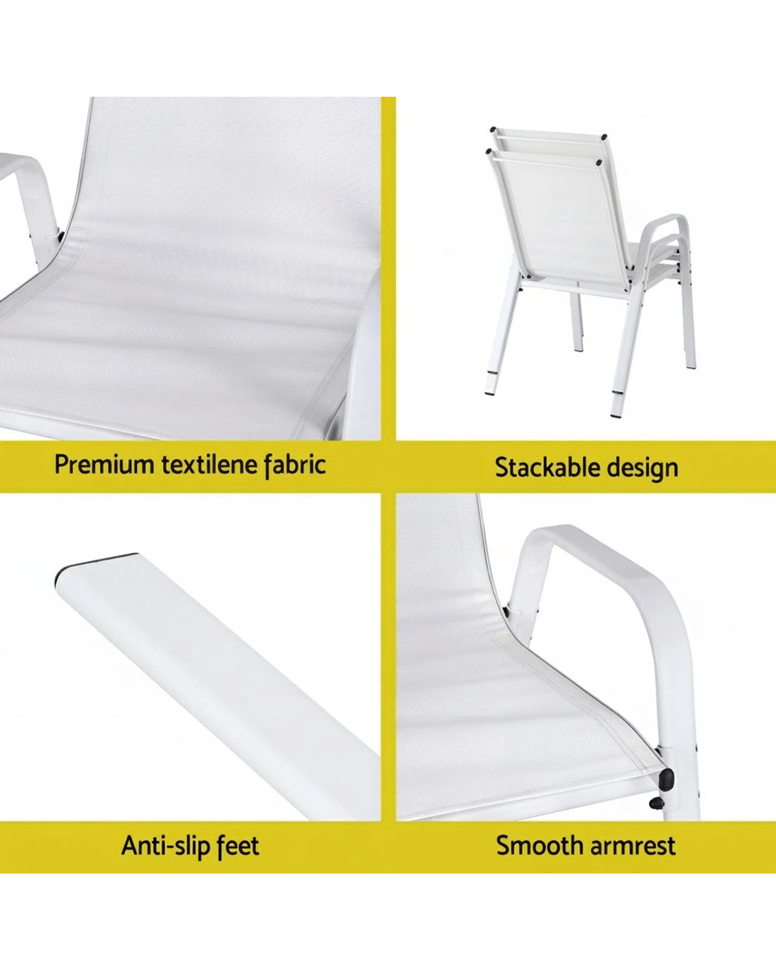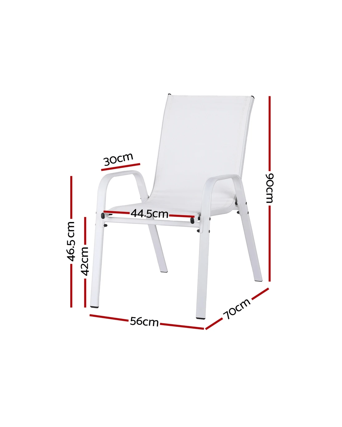 Whether you're hosting an outdoor intimate dinner party or barbeque night for your friends or family, the Gardeon outdoor stackable chair set is perfect to design a gorgeous outdoor setting that will wow your guests. The chairs are stackable, which makes for convenient and easy storage when not required. Designed for years of enjoyment, the chair set boasts classic looks and are made from premium textilene fabric and sturdy metal frame with durable powder coating. The anti-slip feet and good weather-resistance also makes them quite desirable. You can also pair this chair set with our sturdy and beautiful matching table to create a harmonious look.