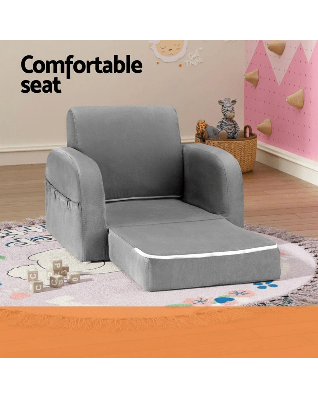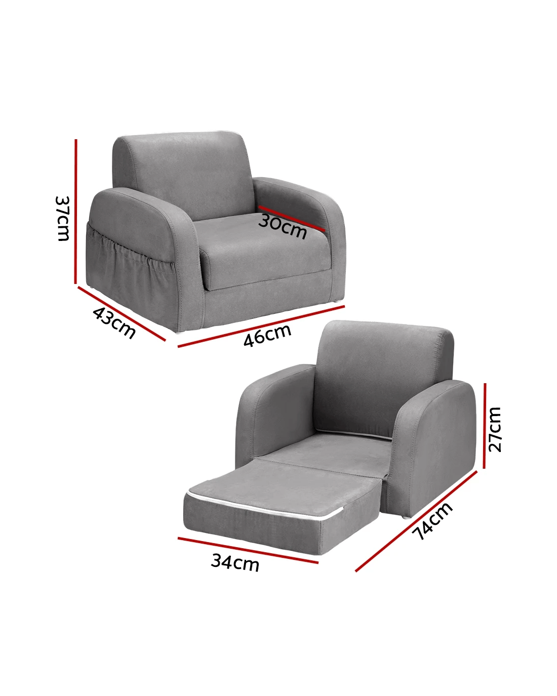 Sold by Aisle SixKeezi Kids Sofa 1 Seater Children Flip Open Couch Lounger Armchair Soft - Grey