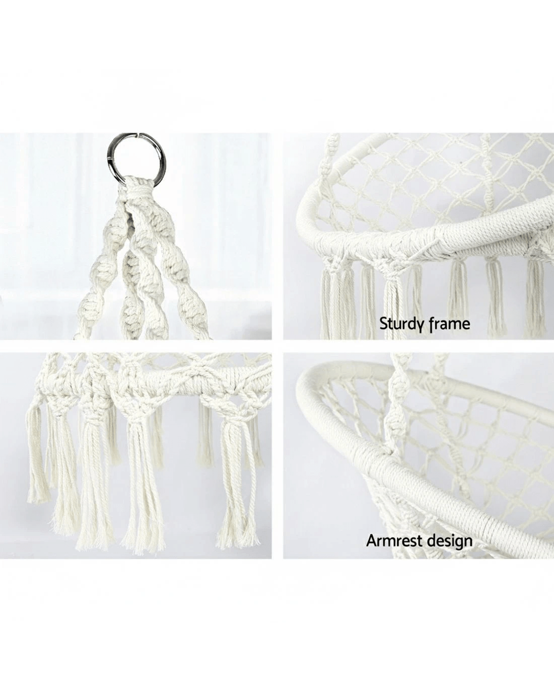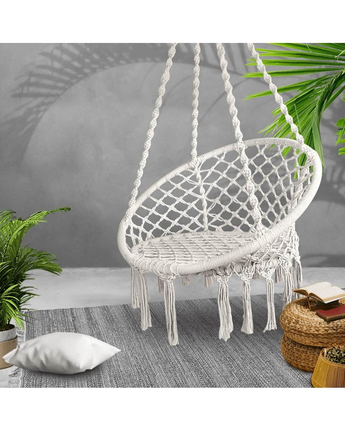 Designed to cup you in the best way possible, our Hammock Chair is extremely relaxing to sit on with ample support for your back and arms. Built of a sturdy structure wrapped in a mix of polyester and cotton fabric, and adorned with lovely handcrafted tassels, our Hammock Chair has all the right vibes of days spent enjoying your favourite past times suspended in mid-air with nary a care in the world.