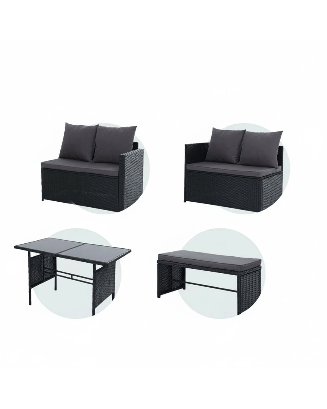 Sold by Aisle SixGardeon Outdoor Dining Set Sofa Lounge Setting Chairs Table Bench Lawn - Black
