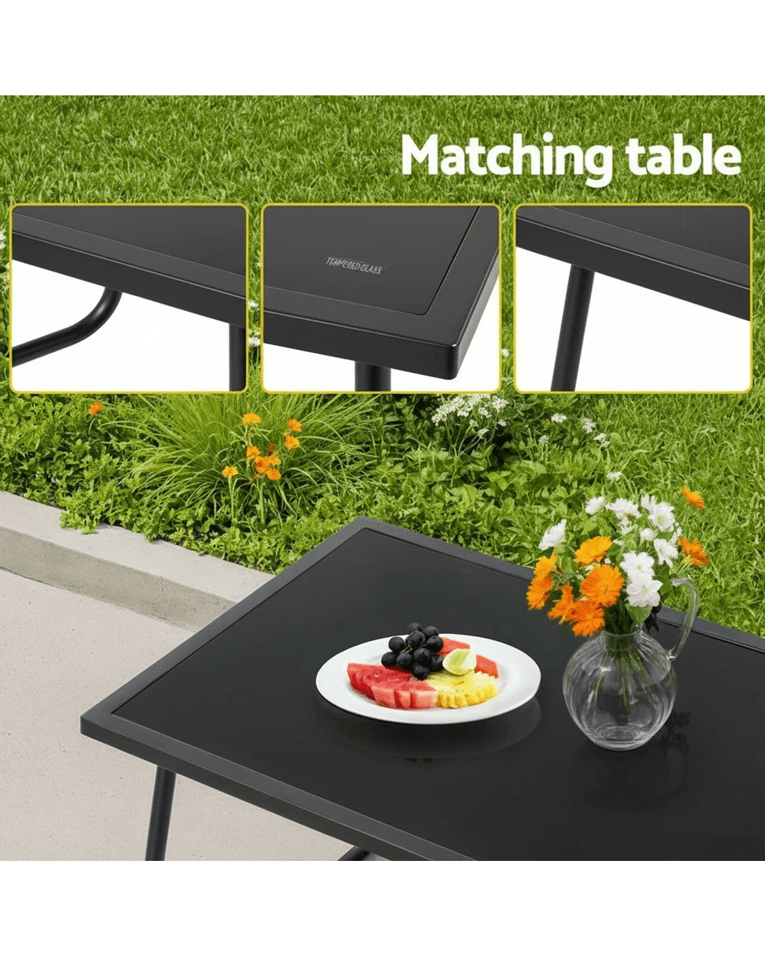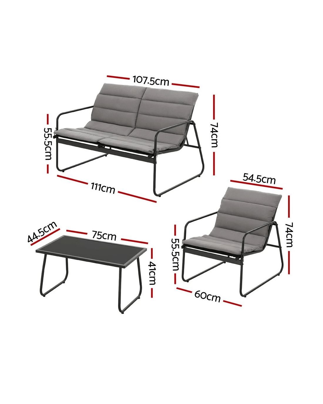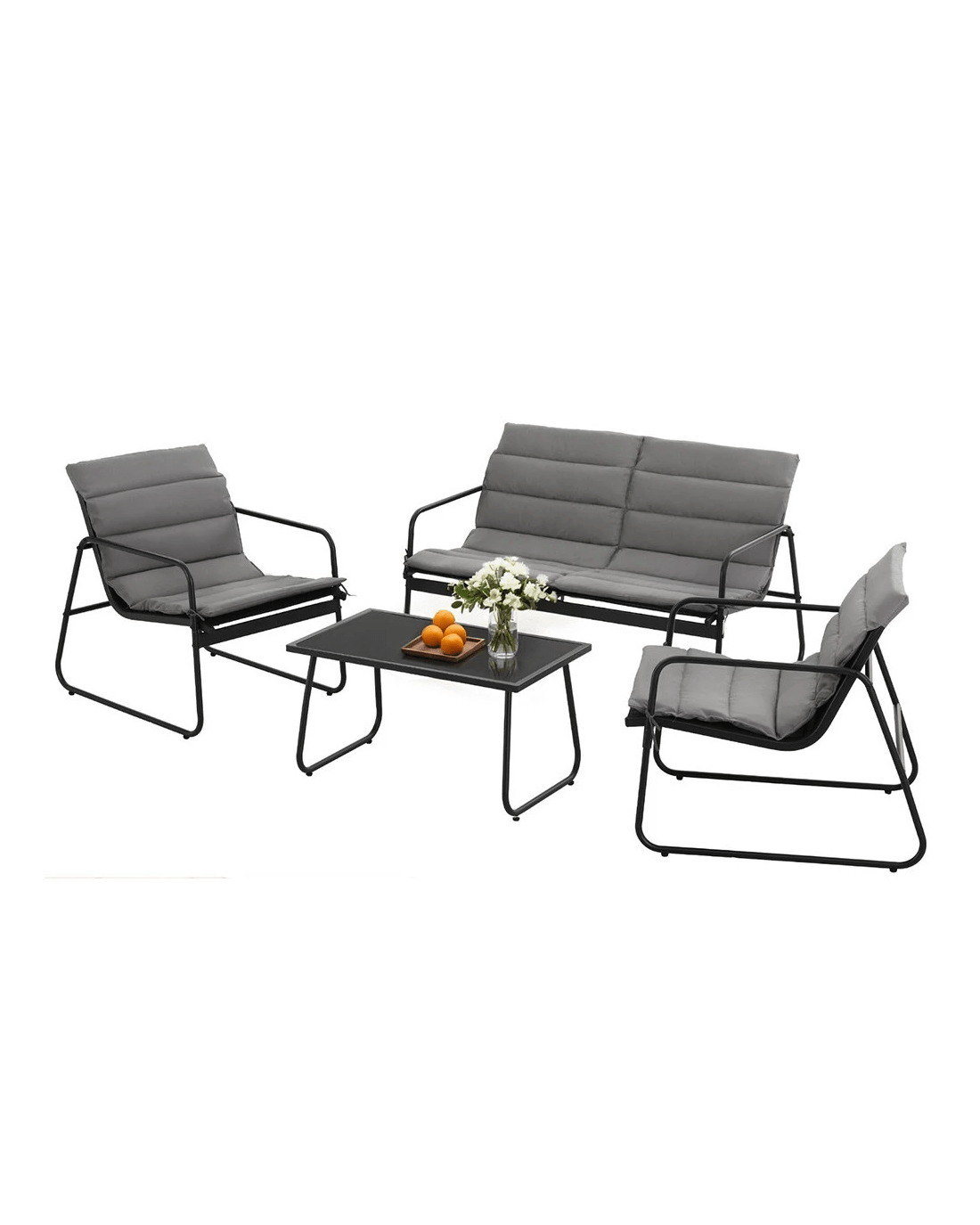 It offers the best of form and function and elevates the overall look and feel of your space. This set comprises of two single chairs, one two-seater sofa, and a matching table with tempered glass tabletop. Our outdoor furniture set is crafted from durable and solid powder-coated steel frame for longlasting use. It will stand the rigours of everyday use. Thanks to the weather-resistant textilene fabric that makes the furniture set easy to clean and suitable for all-weather use. You can use it indoors and outdoors. The set has non-slip feet for ultimate stability, and the smooth surface makes it easy to clean. Highly functional, stylish, and practical, bring home our Gardeon outdoor furniture set today.