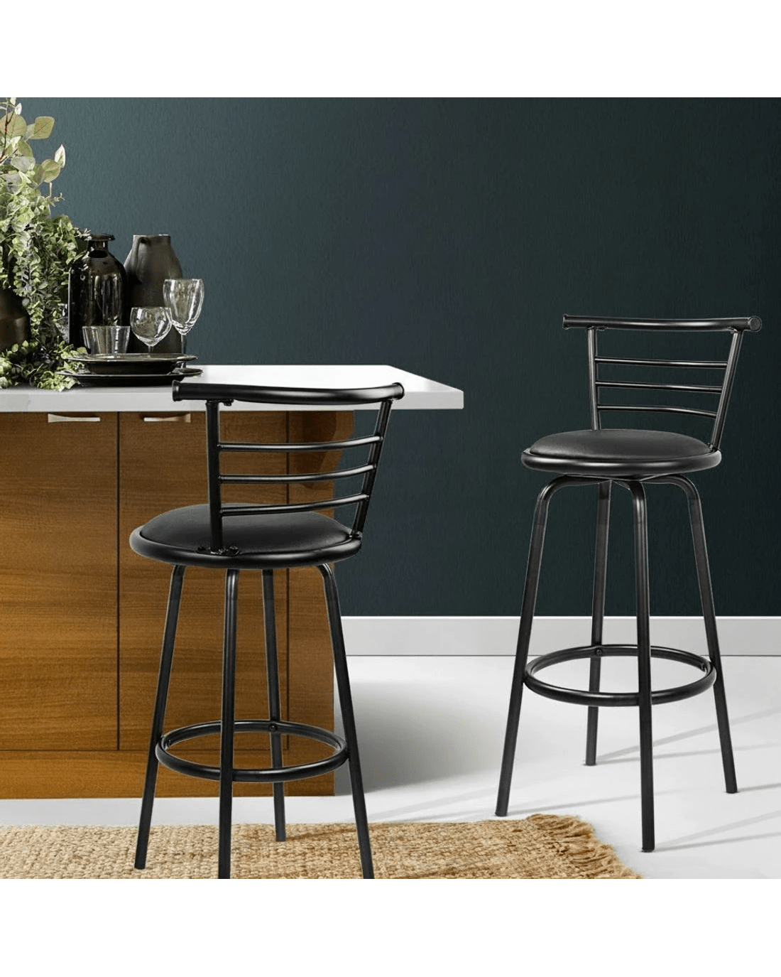 Sold by Aisle SixArtiss 2x Bar Stools Swivel Leather Padded Metal - Black