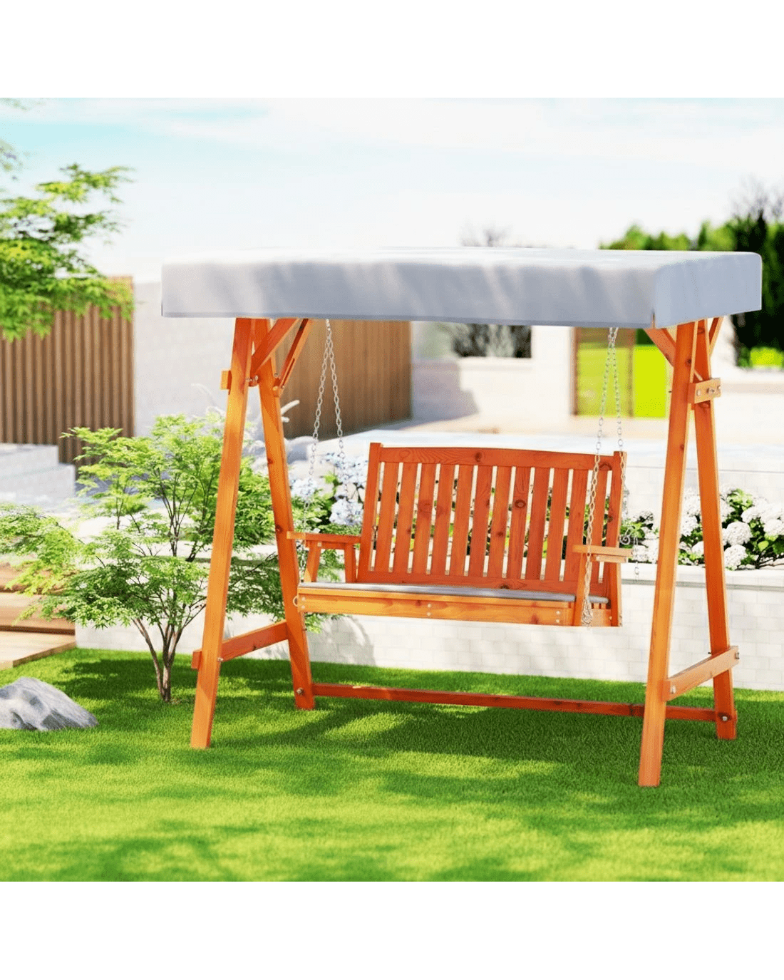 Sold by Aisle SixGardeon Outdoor Wooden Swing Chair Garden Bench Canopy Cushion 2 Seater Teak - Multi