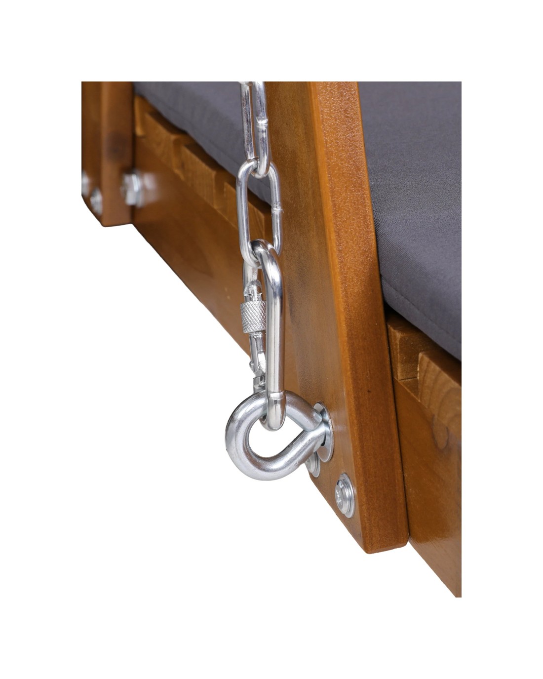 Made of durable fir wood, the frame is strong and sturdy while the generously padded seat upholstered in durable polyester offers ultimate comfort. The water-resistant and UV-protected canopy can be set in any position to provide the right cover or detach completely for relaxed sunbathing. The cushions and covers are removable for easy cleaning. Best of all, the stainless steel hook, rust-proof metal chain, and sturdy A-frame structure provide the ultimate support, so you can rest and relax with peace of mind.