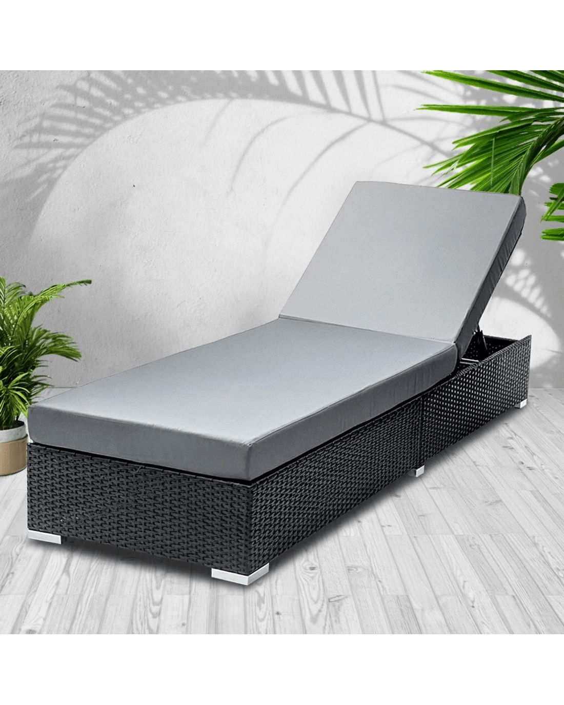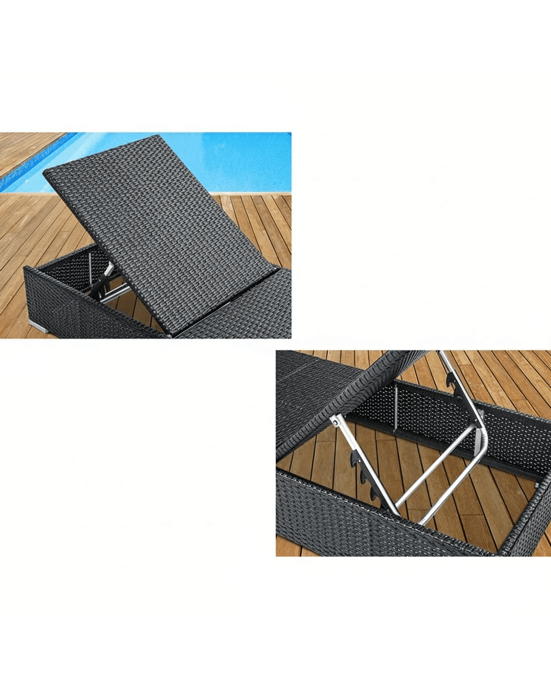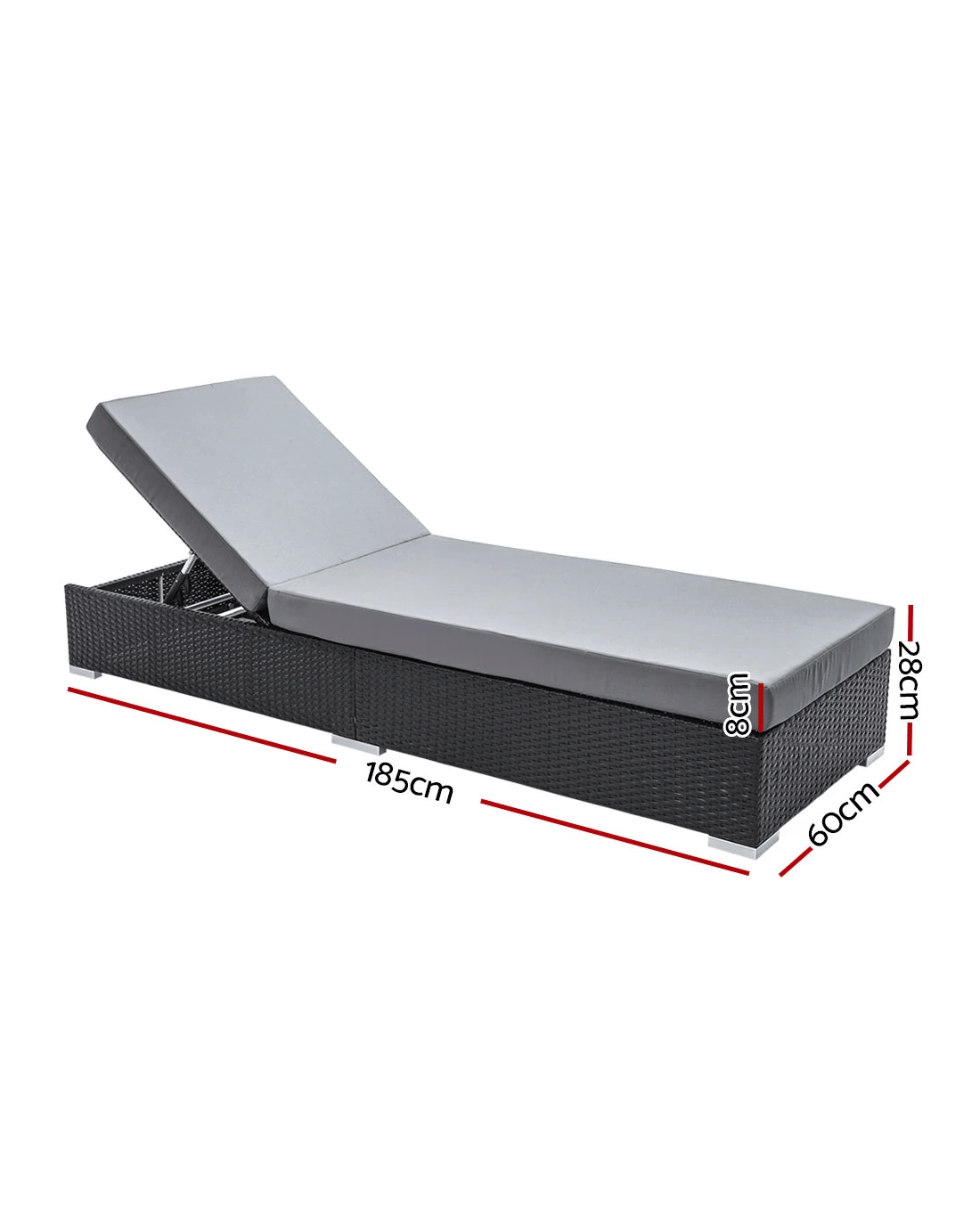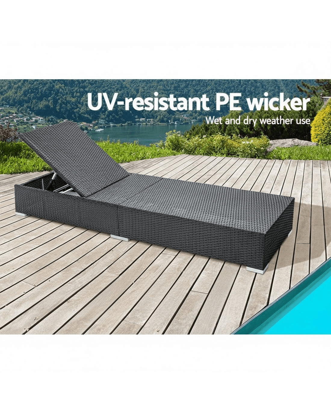 Sold by Aisle SixGardeon Sun Lounge Wicker Lounger Outdoor Furniture Day Bed Adjustable Rattan Garden Cover - Black