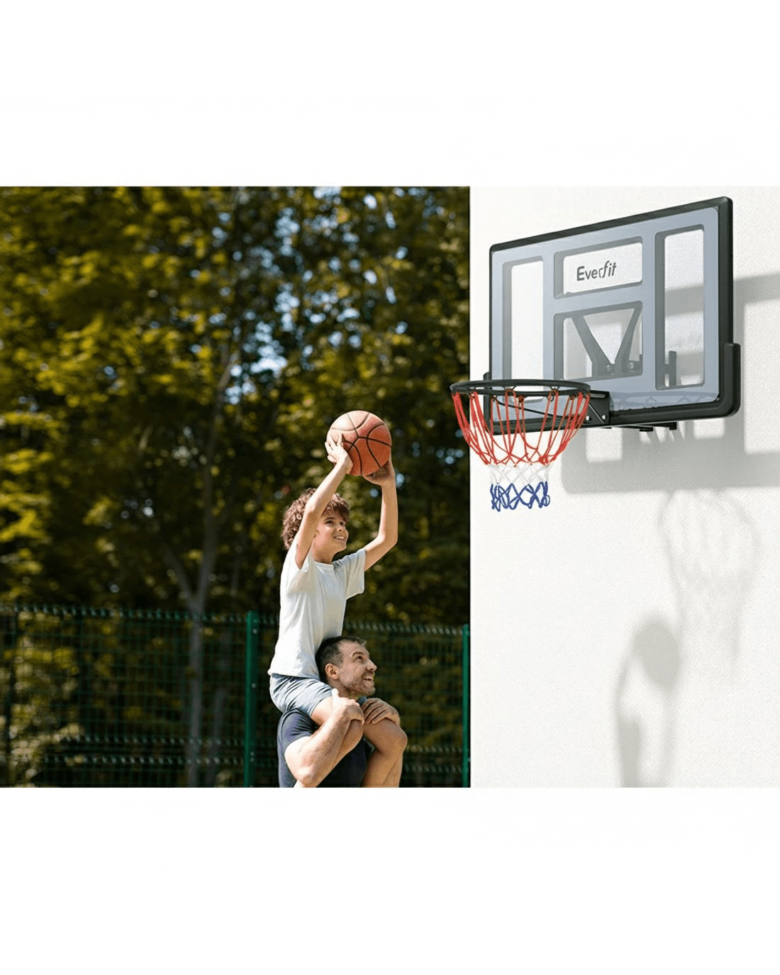 Foster your children's love of sports with the portable and flexible Everfit Basketball Hoop. With its lightweight and portable design, the hoop can easily be mounted on your walls or doors to experience the adrenaline-pumping fun of basketball from the comfort of your home. The backboard is crafted from shatterproof PC plastic, ensuring durability and endless hours of intense play. The high-tensile spring-loaded rim helps to protect the rim and backboard from slam dunks and ensures longevity. The waterproof nylon net allows for a seamless shooting experience in any weather. Enjoy this classic sport at home anytime with friends and family thanks to the Everfit Basketball Hoop – get yours today.