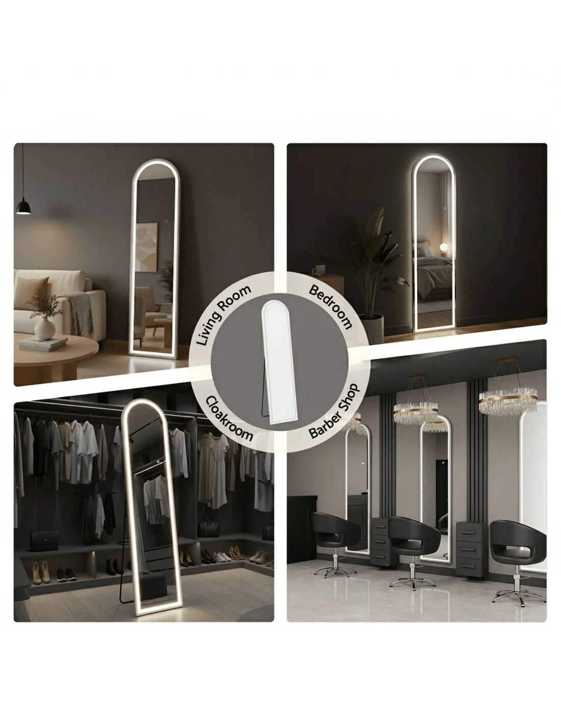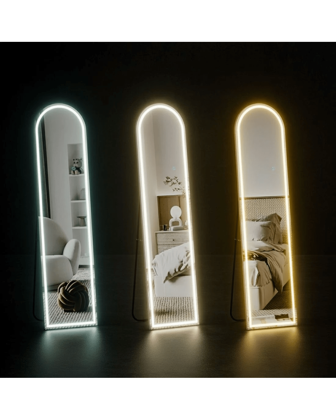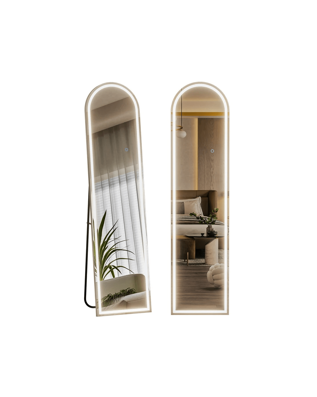 Elevate your space with the Embellir Full-Length LED Mirror. This elegant arch mirror features an adjustable LED light with three colour temperatures and stepless dimmable brightness control. Use it as a freestanding mirror, or easily mount it on the wall. Crafted with high-definition shatterproof glass, this wall mirror provides a clear, full-body view. Its modern design makes it a must-have dorm essential and a perfect piece of wall art for home decor for your bedroom or living room decor.
